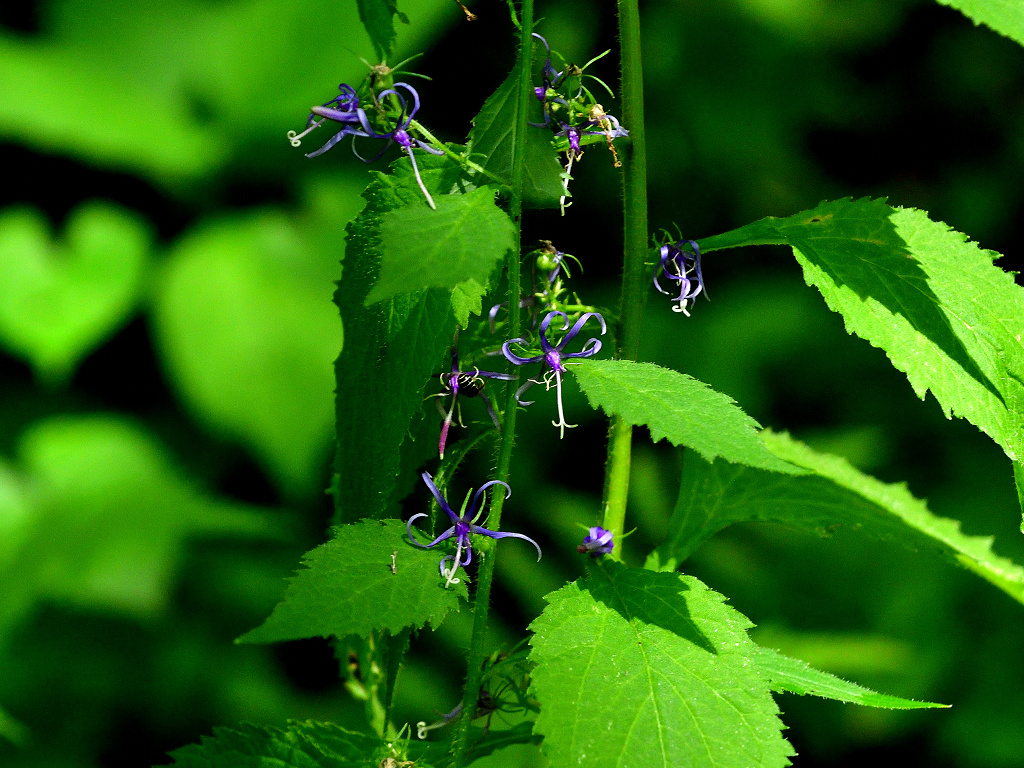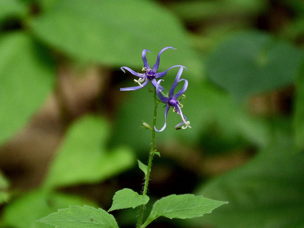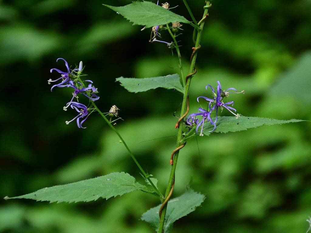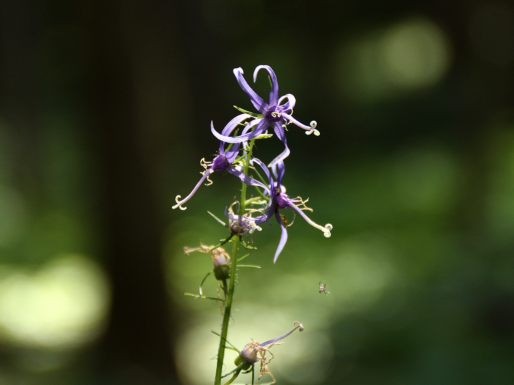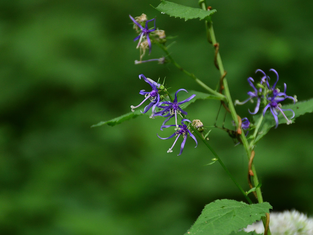 花びらは深く5裂し、細くて長くカールしている。中央に長い花柱がある