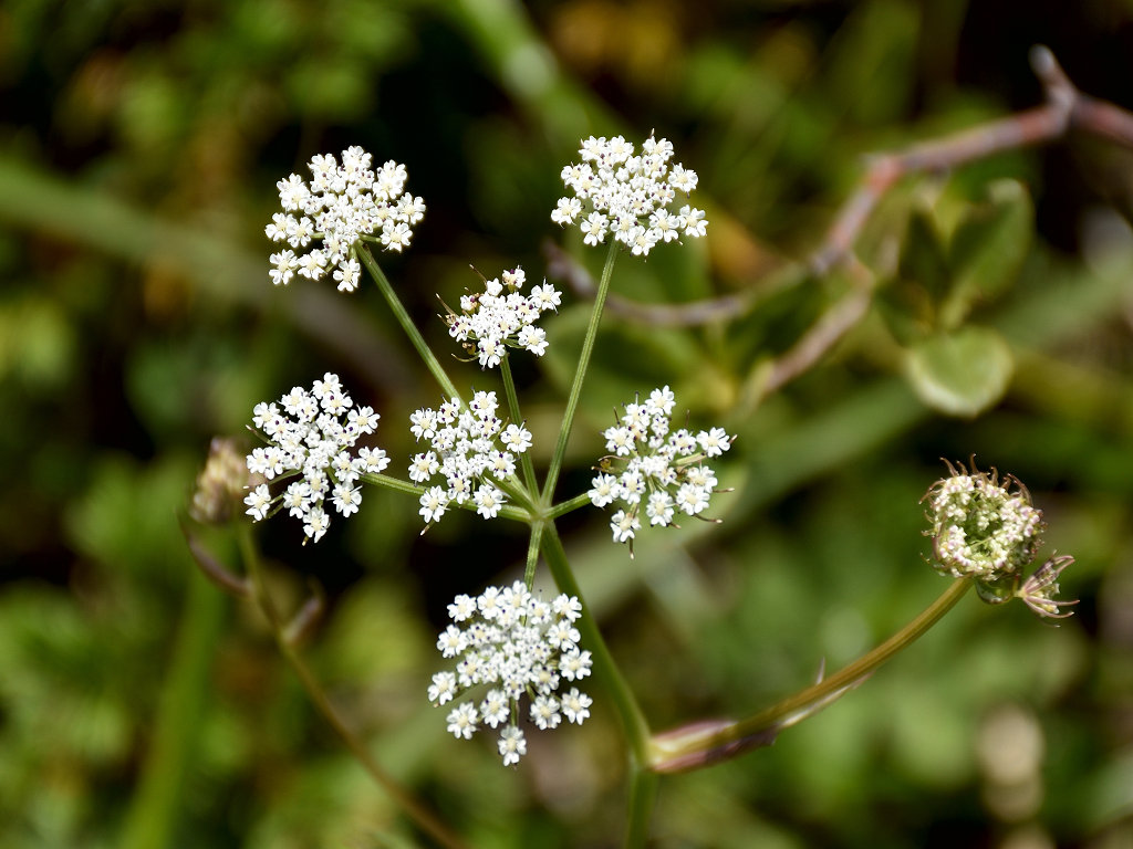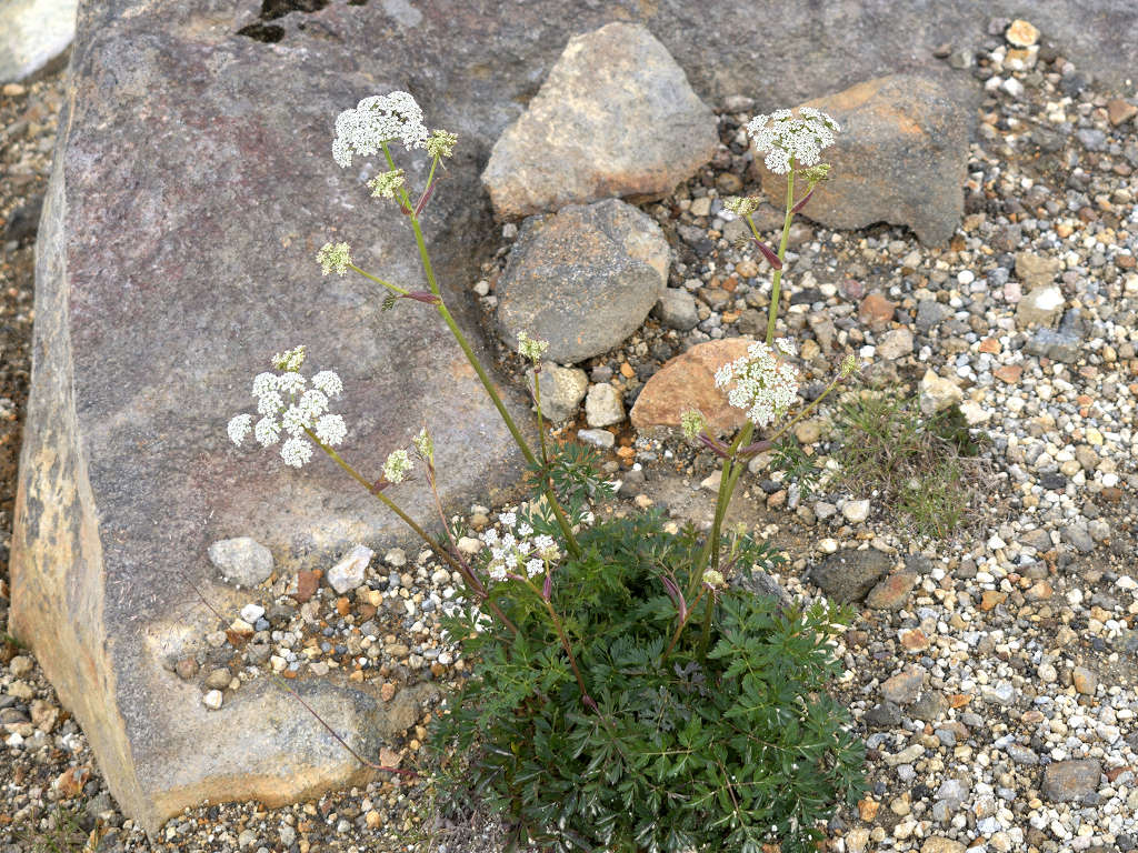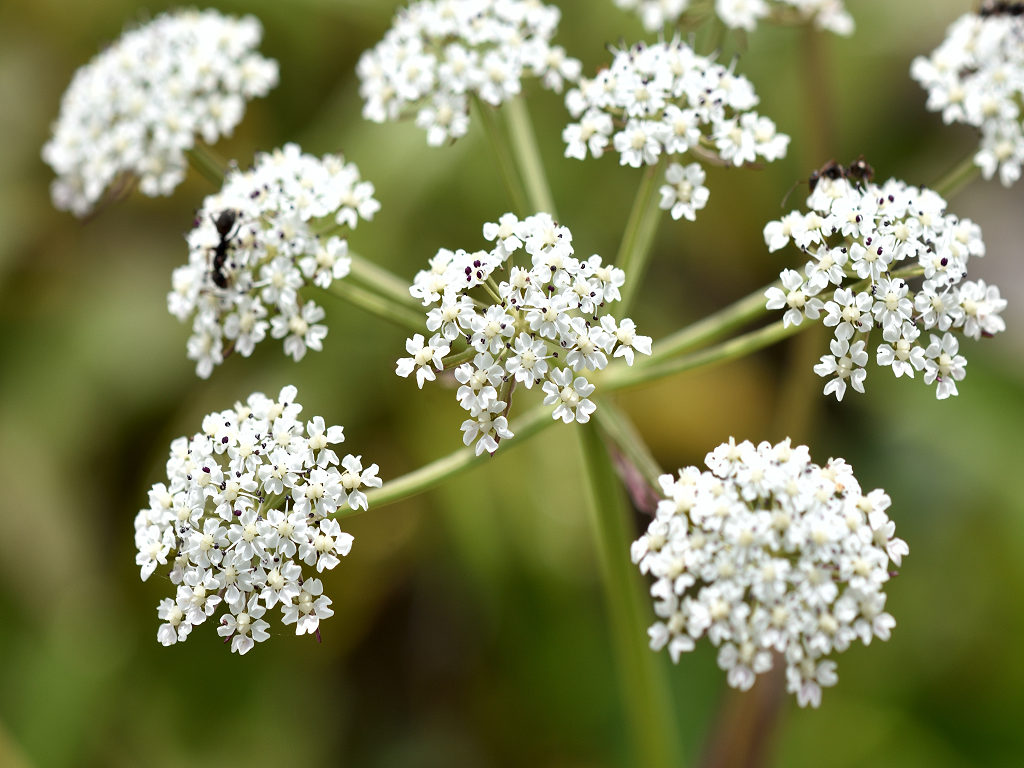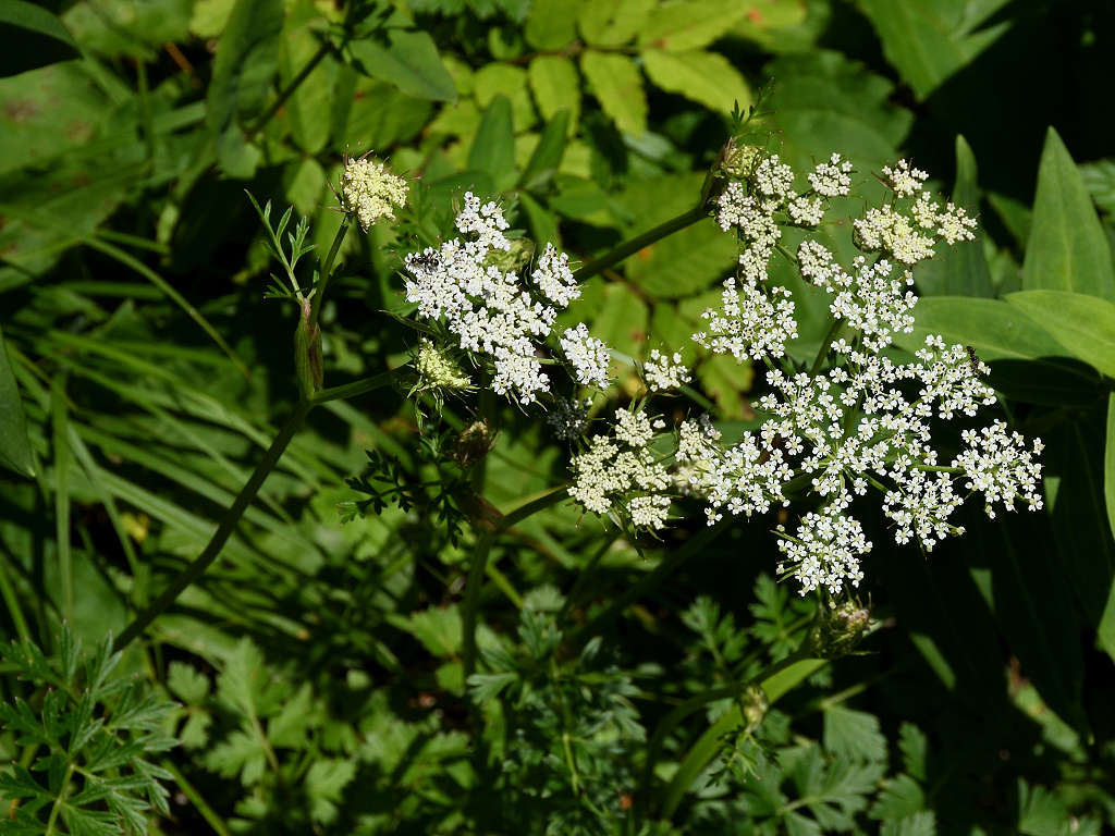 白色の花を多数 「ミヤマセンキュウ」との違いは小葉の終裂片の先が尾状に伸びず、葉が根際にまとまってつくことで区別