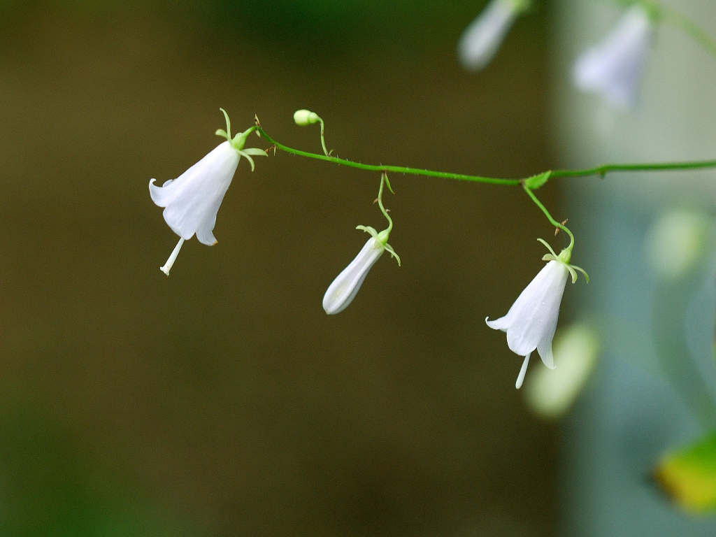 「ソバナ」は、葉が茎に互生し、葉に長い葉柄があることで見分けられる。また本種は、花柱は花冠からやや突き出している 最初に福島県で採取された標本に基づいてこの名が付く 花が白色で白花