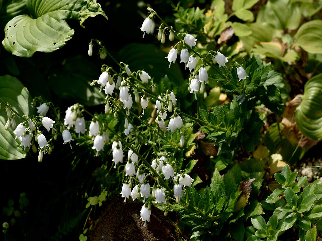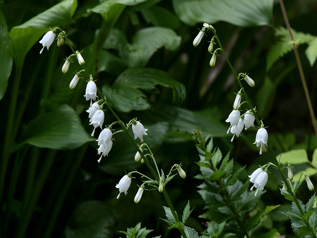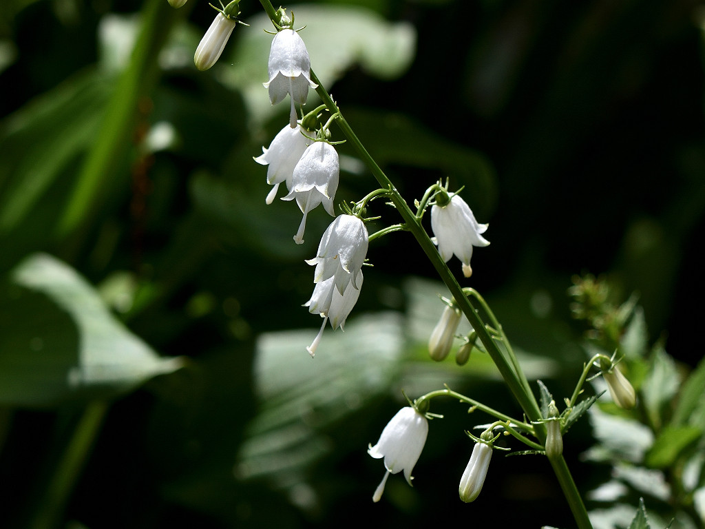 ツリガネニンジンの根を「シャジン」といい、その仲間で白山で発見されたからこの名 ハクサンシャジンの白花