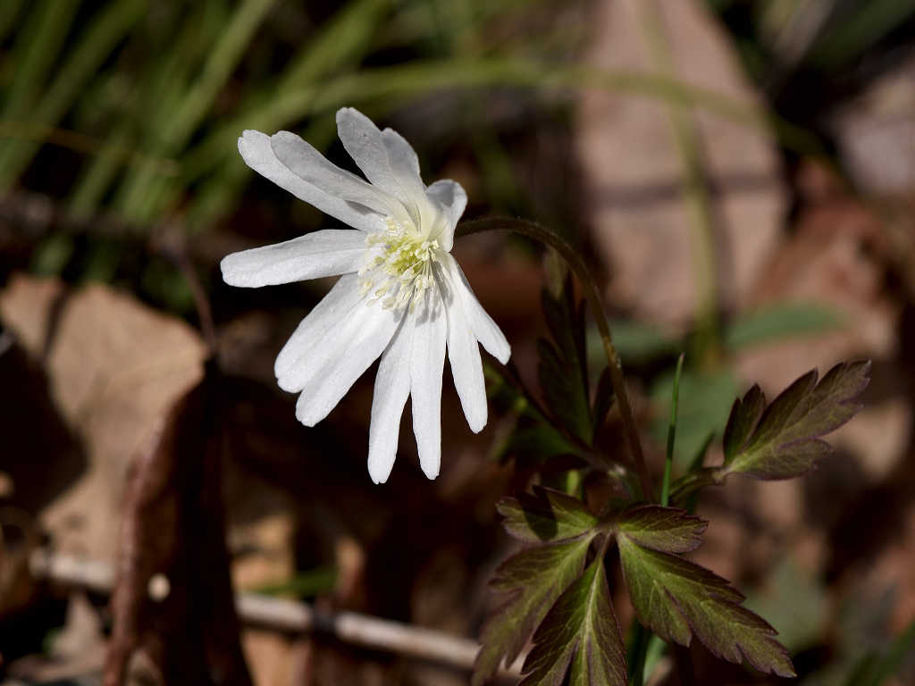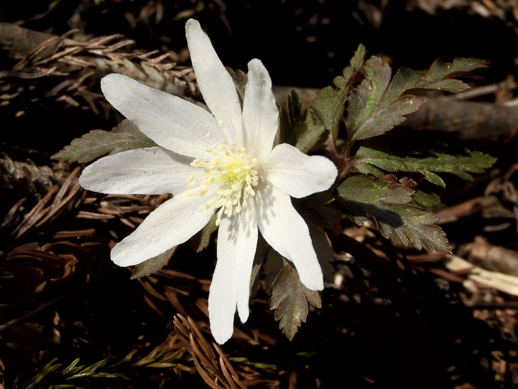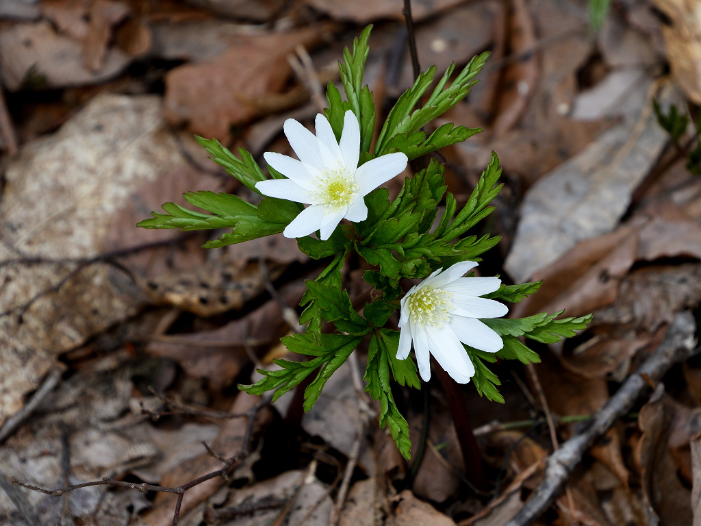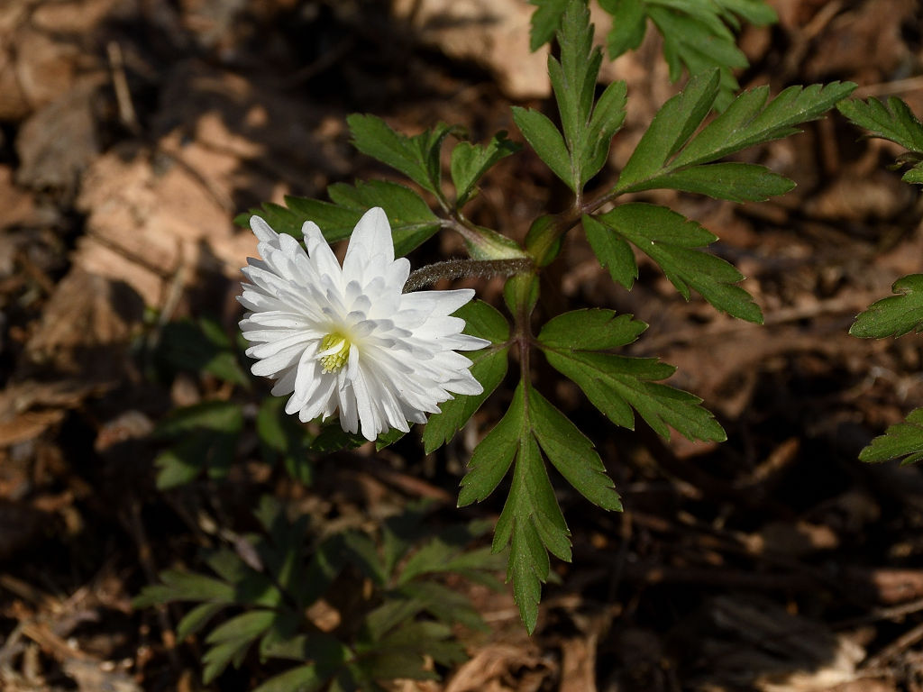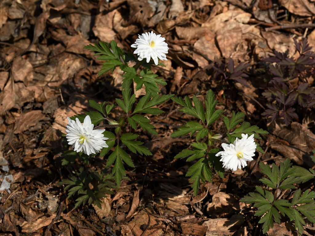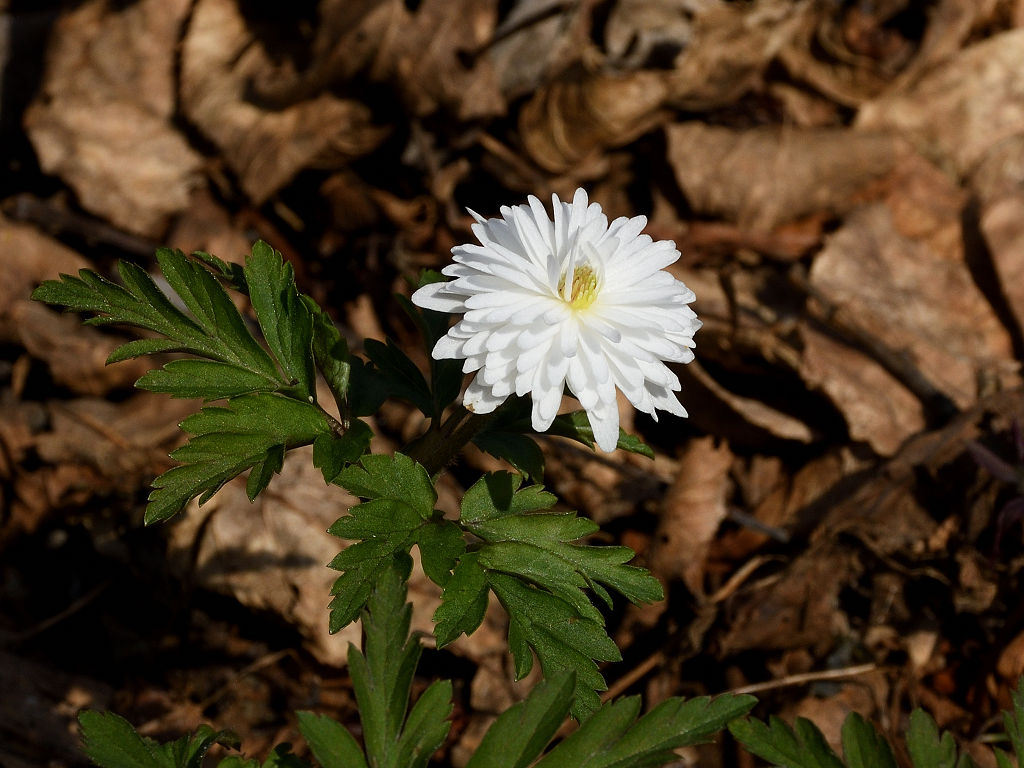キク科ではないのに、花の咲き方が「キク」に似ていて、1つの花を咲かせるので「イチゲ」と付いた「キクザキイチゲ」の白花
