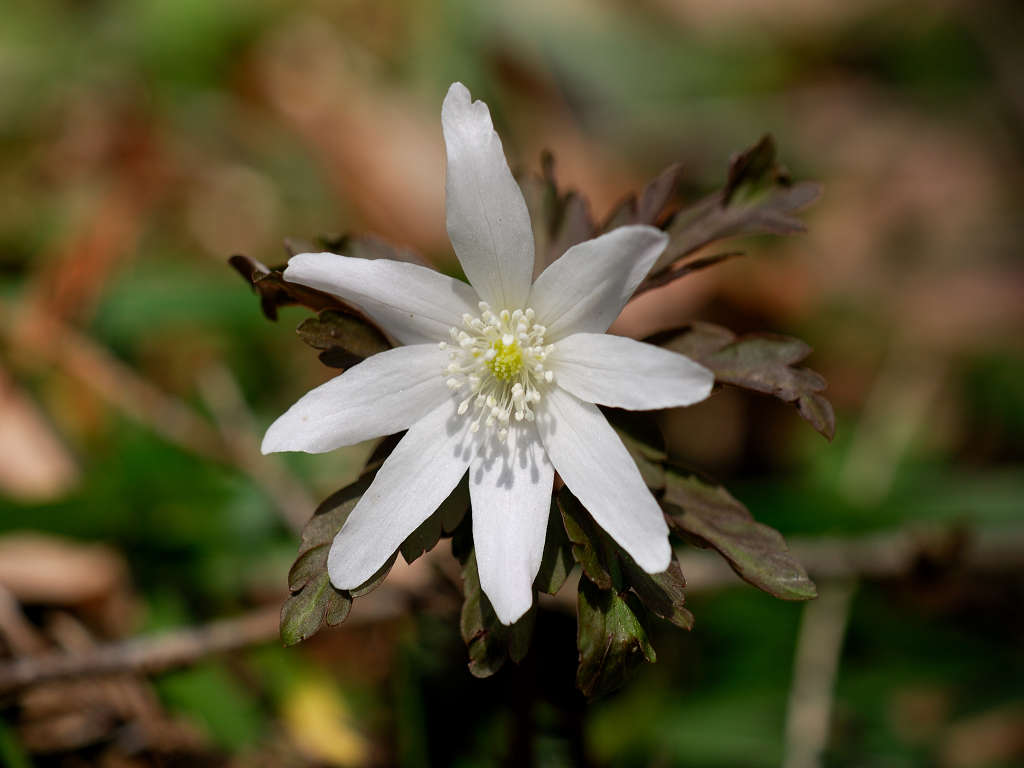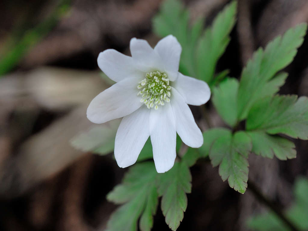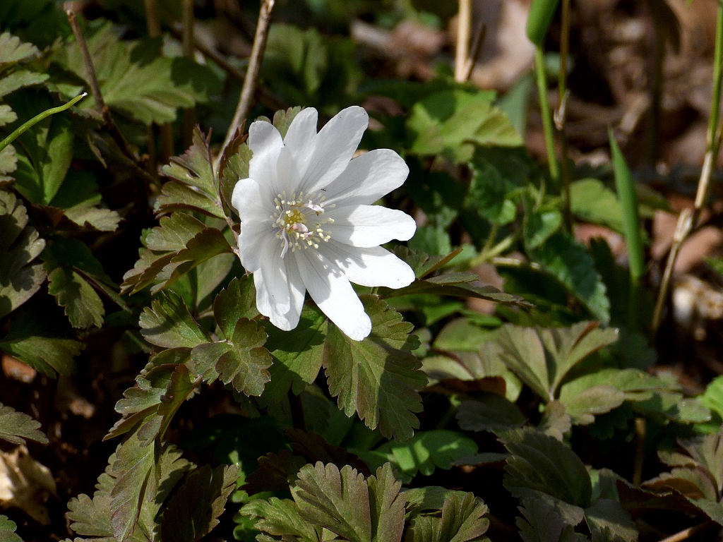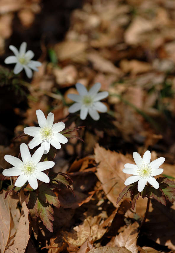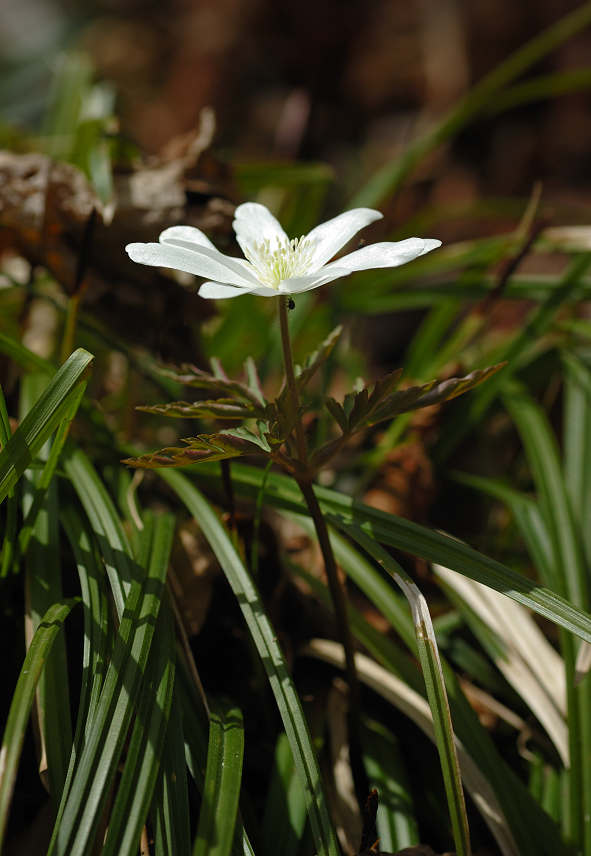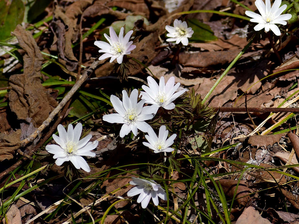 キク科ではないのに、花の咲き方が「キク」に似ていて、1つの花を咲かせるので「イチゲ」と付いた「キクザキイチゲ」の白花