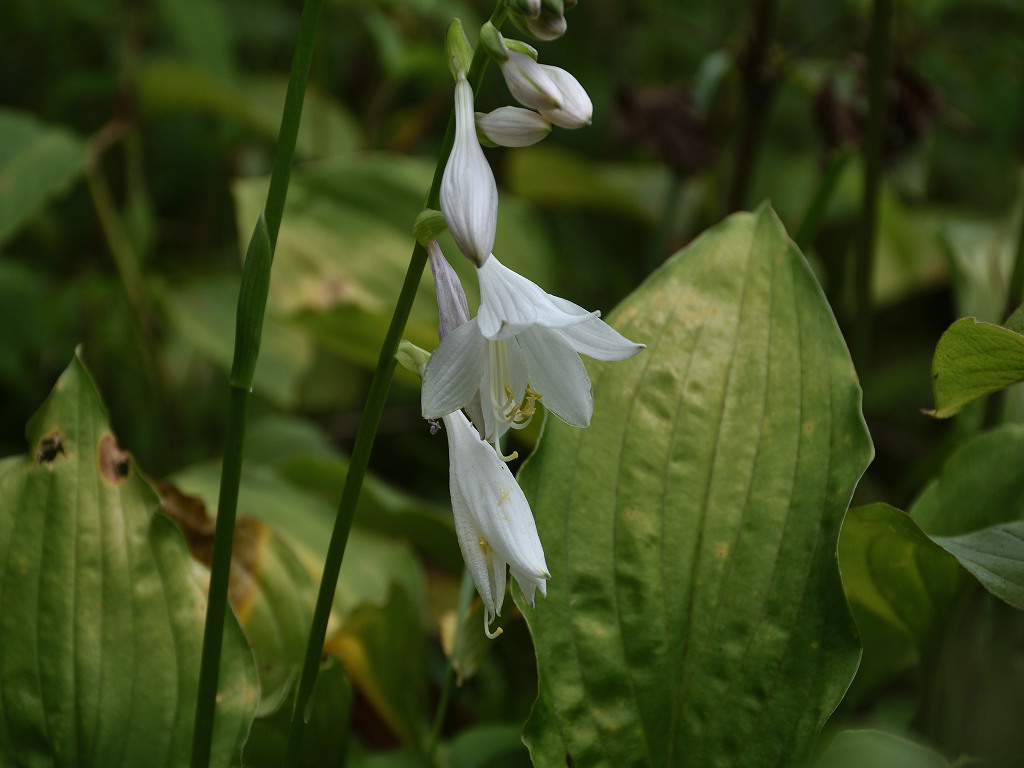 蕾の形が、橋の欄干の飾り「擬宝珠」に似ることからギボウシ 花の色が「シロ」いのでシロバナ