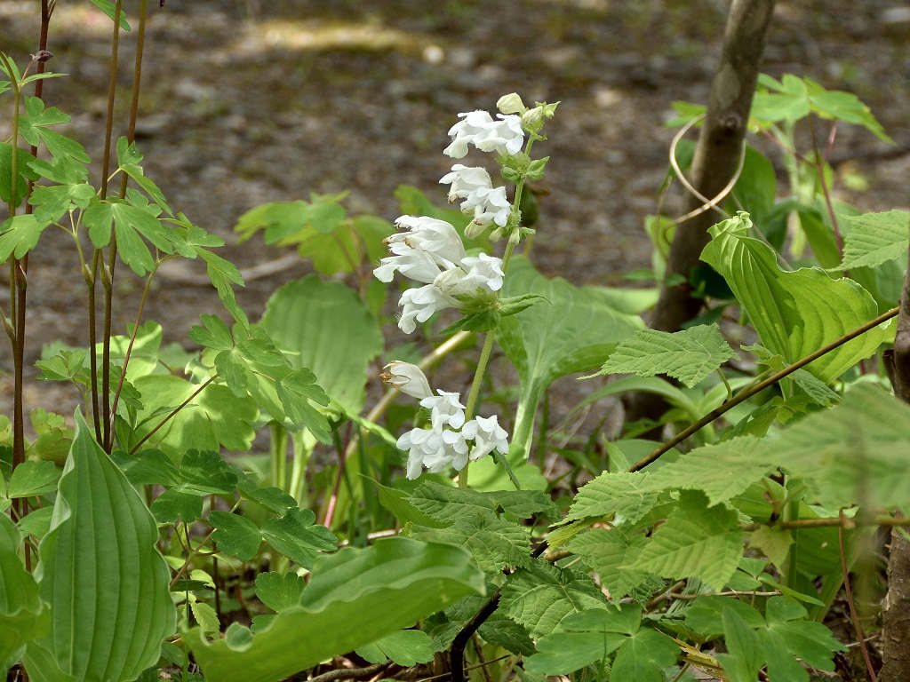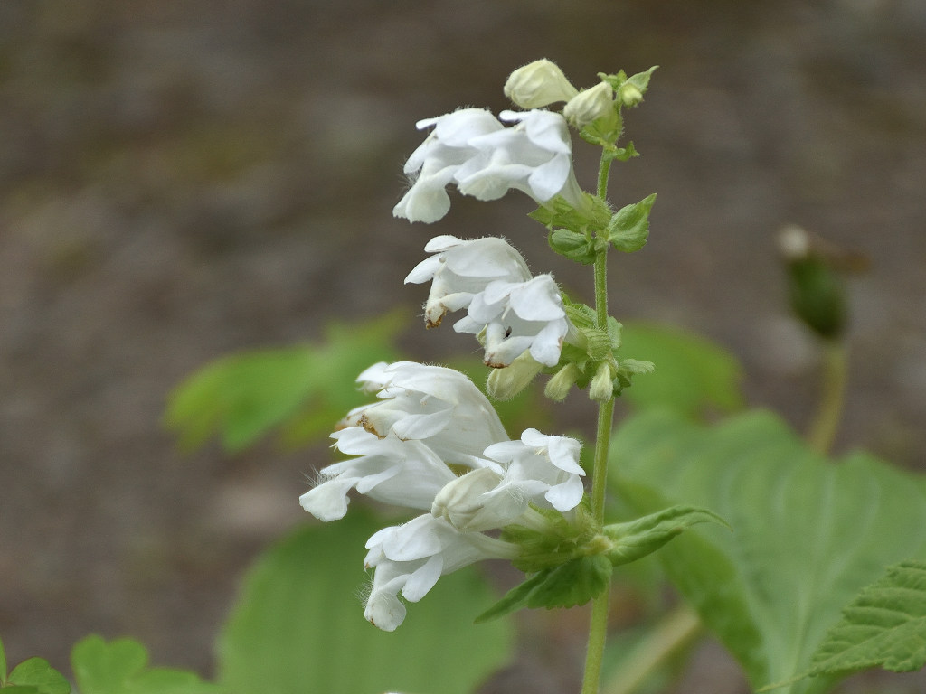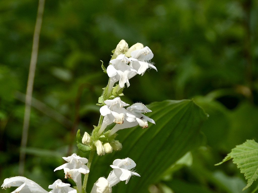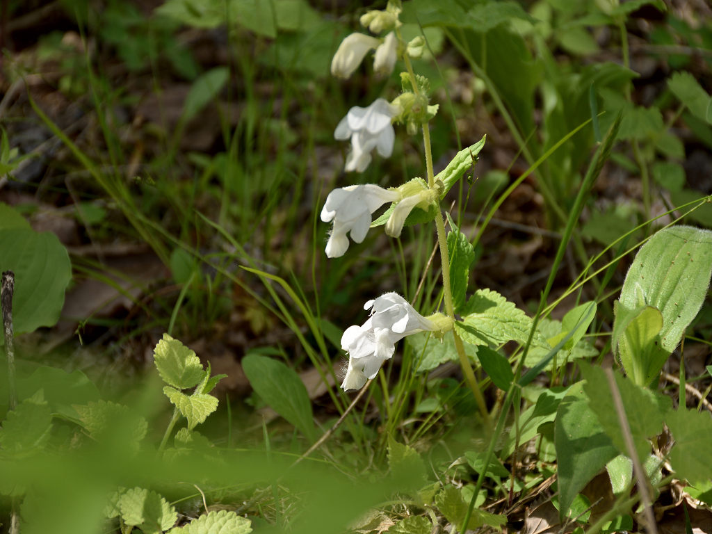 茎がツルじぃうに伸び所々で立ち上がる 羽は対生でハート形 その周りから筒形の花で先は唇形