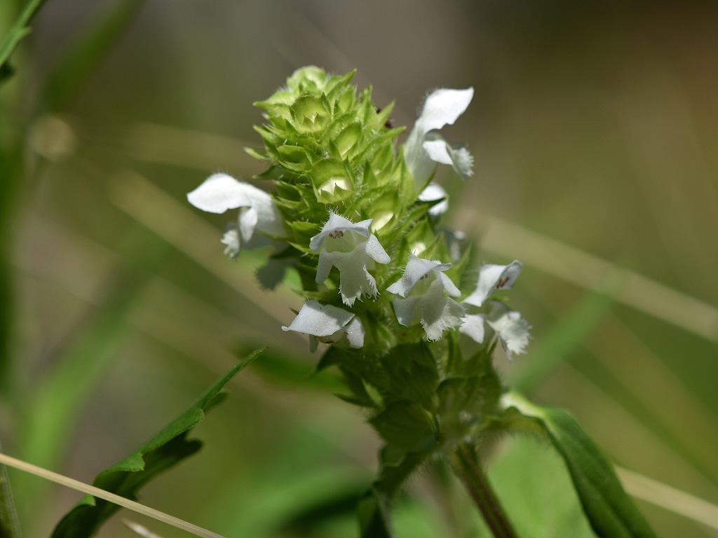 名前は花の形が弓矢を入れる靫(うつぼ)に似ていることから。 紫色のウツボグサの白花