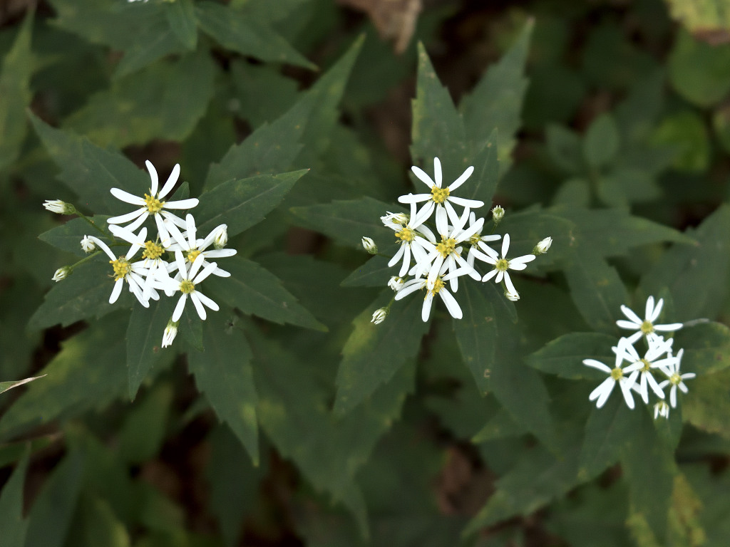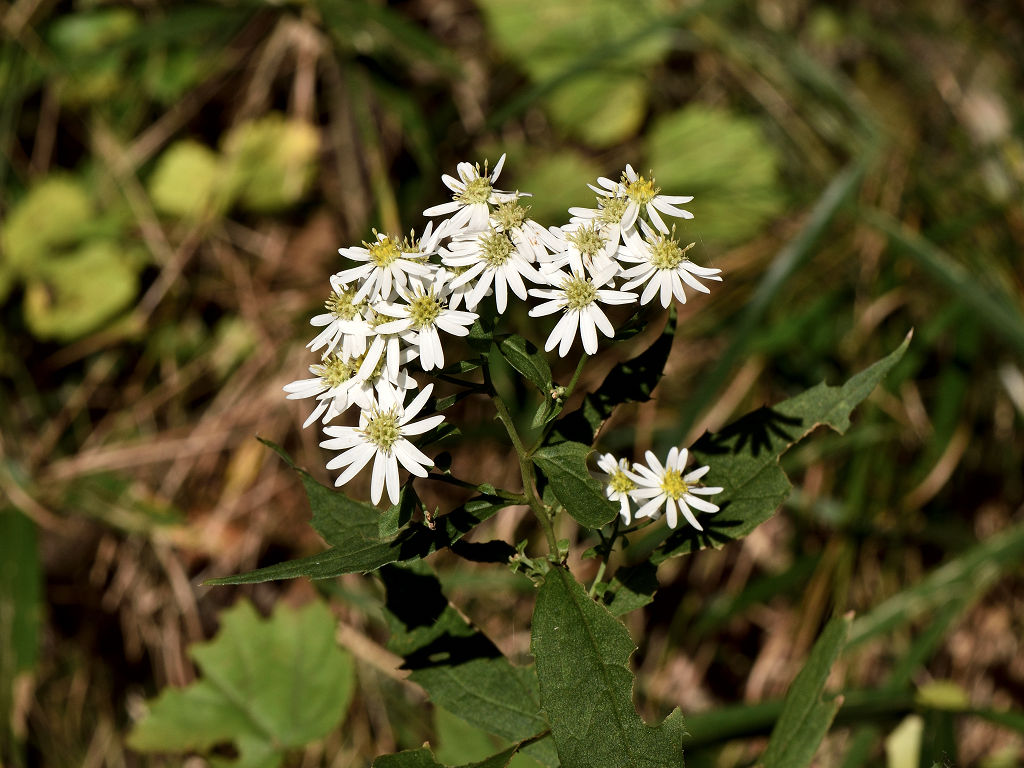草姿が「嫁菜」に似る。花は白色。それで「シロヨメナ」