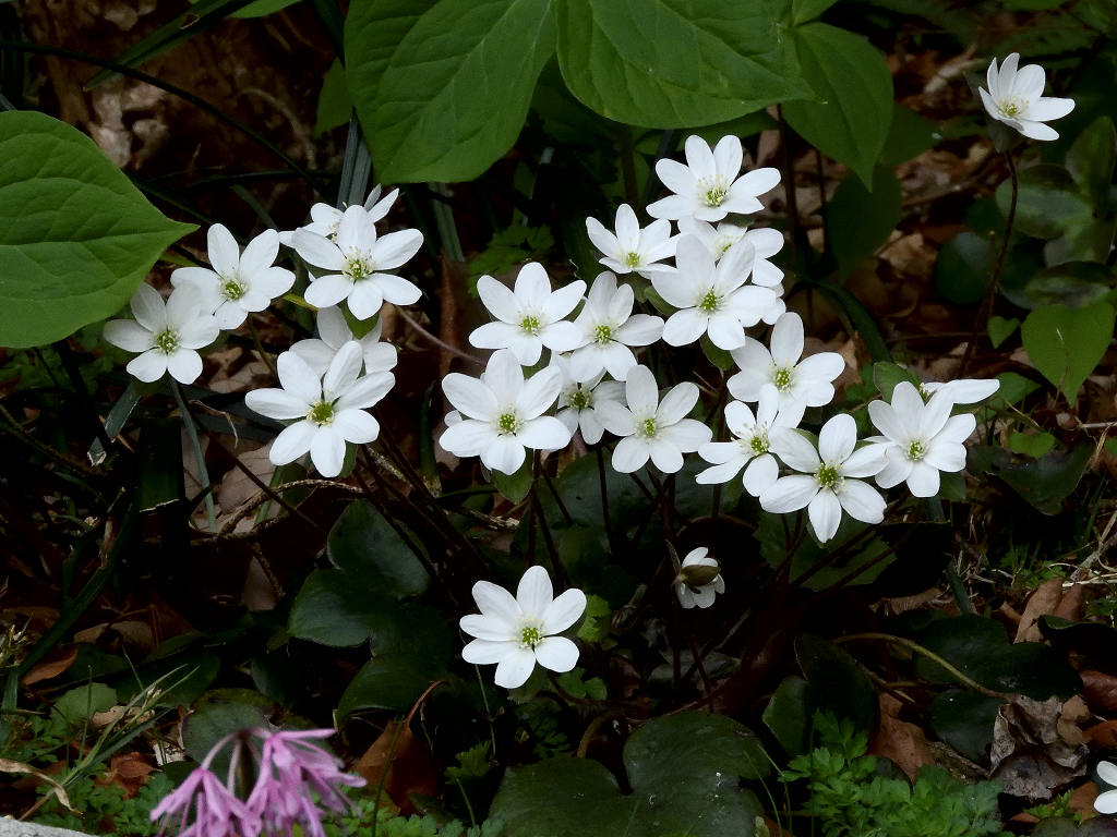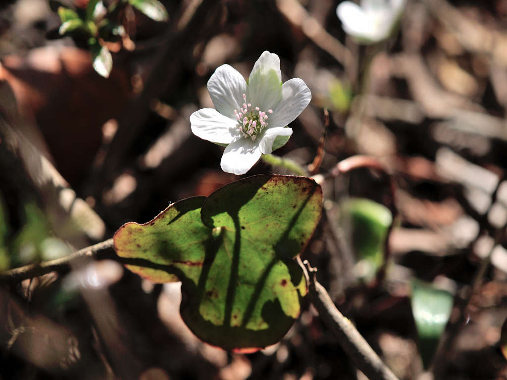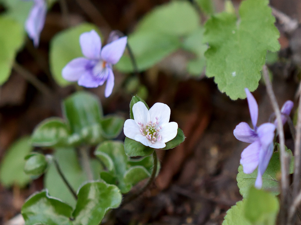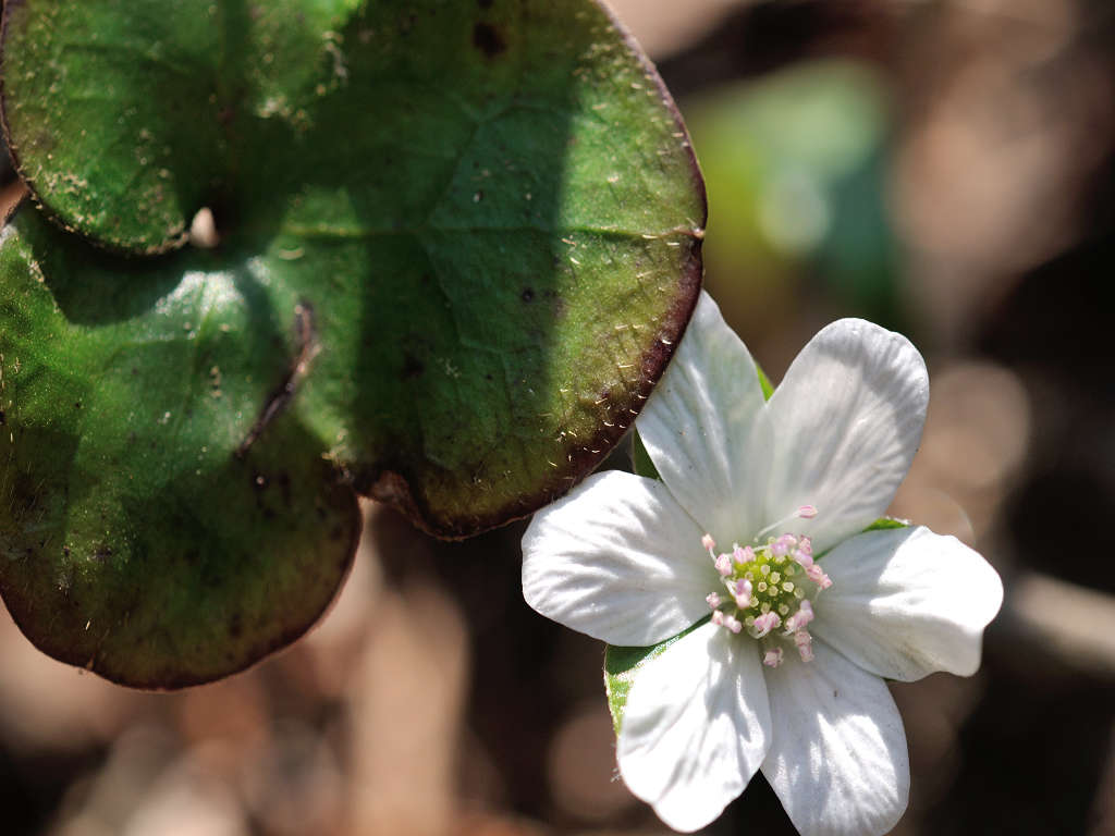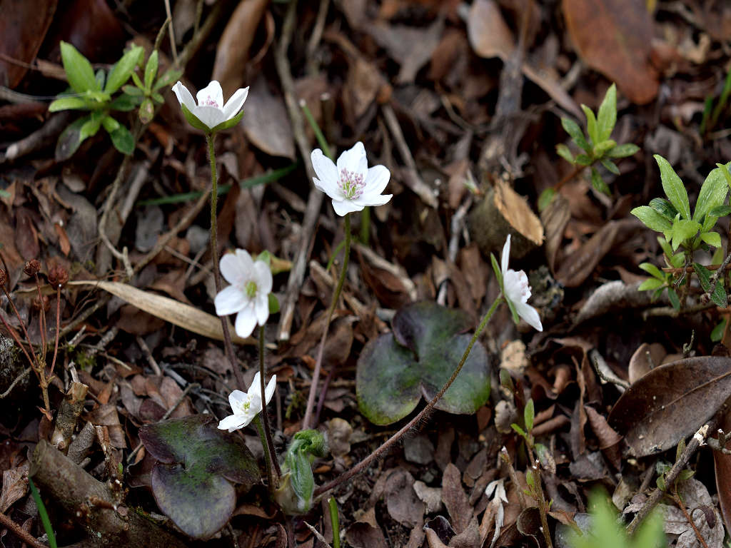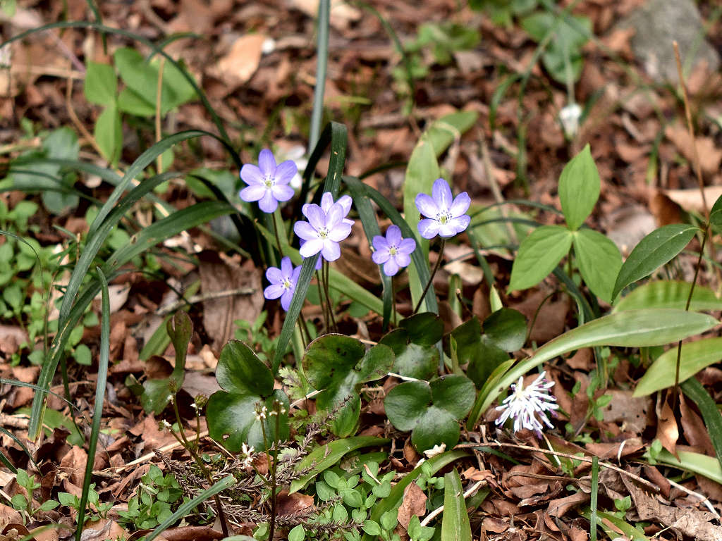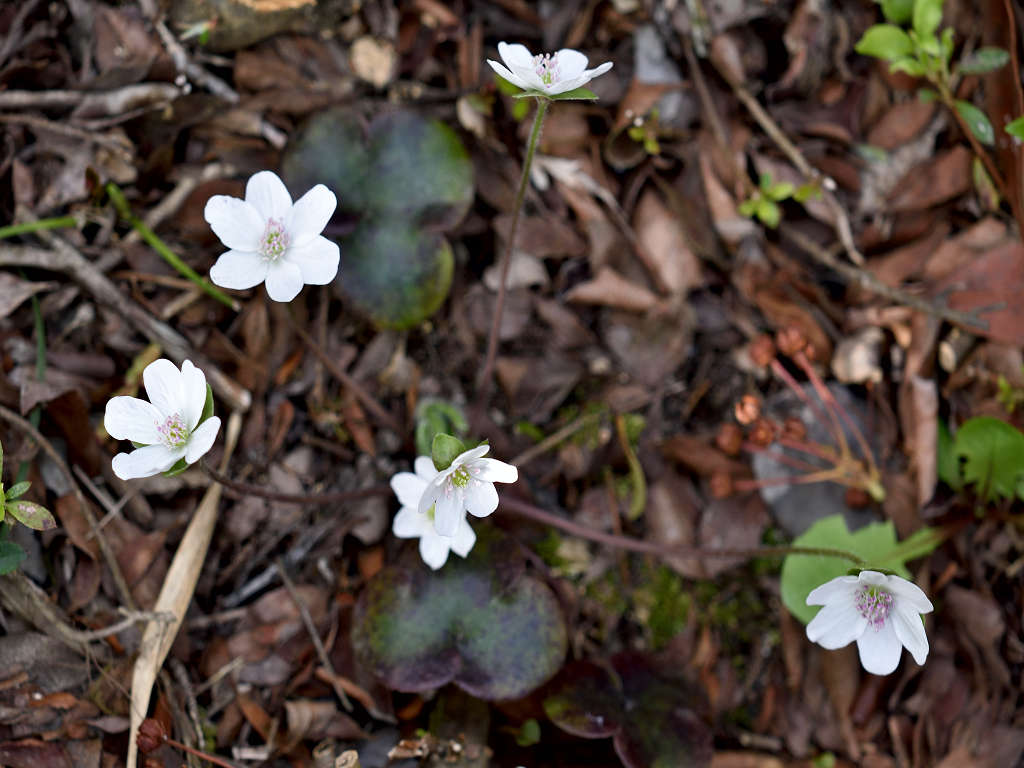早春に美しい花を咲かせることから、雪割り草とも呼ばれる 3つに分かれた裂片の先端は円頭であり、「ミスミソウ」は三角で区別される