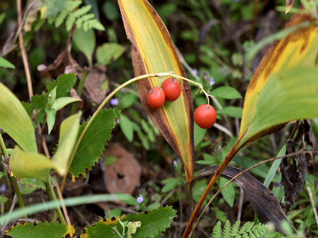 白い鈴を吊したように見える。ユリ科だが、ラン科に似ているので「ラン」を付けた