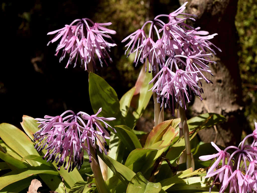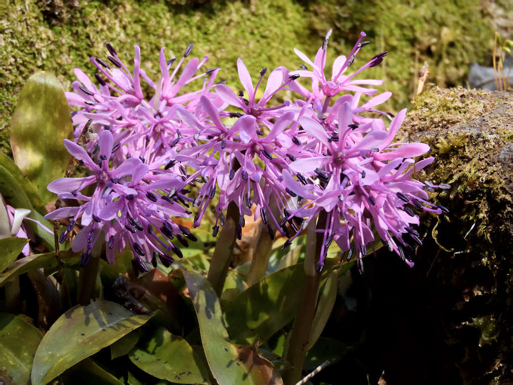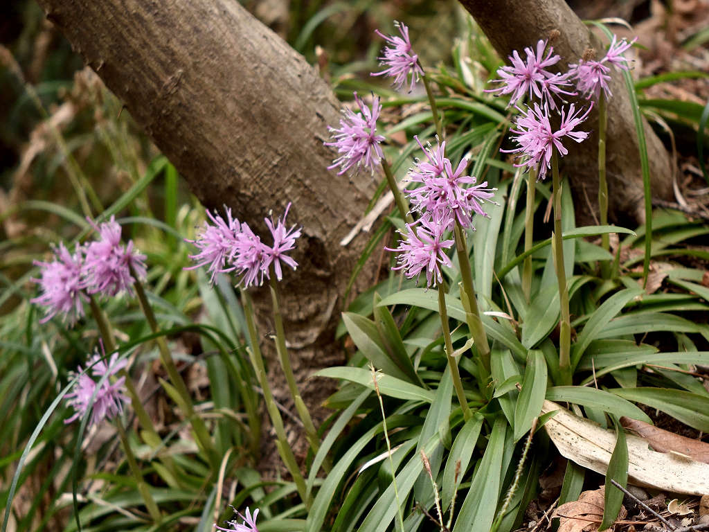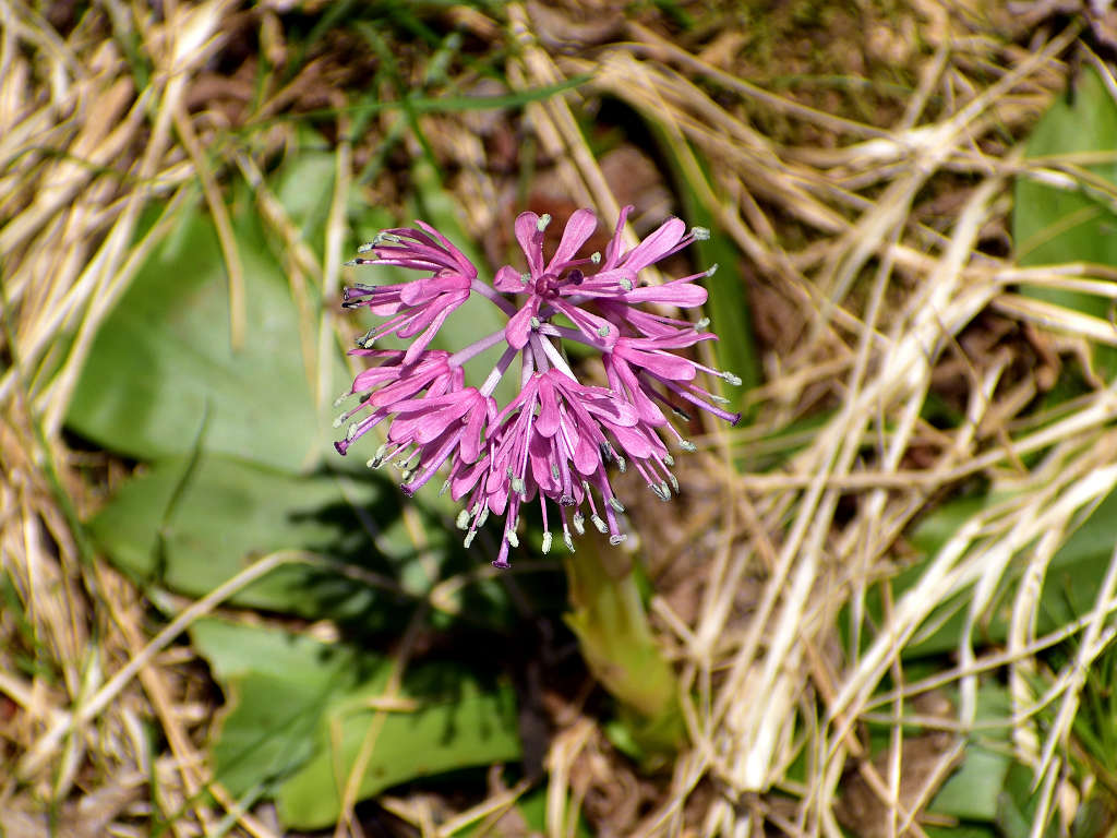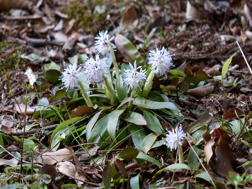 花径の先にいくつかに分かれて花が咲く 花弁は6枚 葉はロゼット状