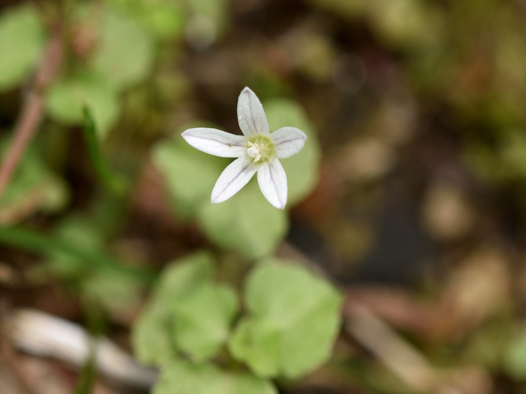 花の色は白く、花冠は鐘形で5つに深く裂ける 雄しべは5本 雌しべの柱頭は3つに裂ける