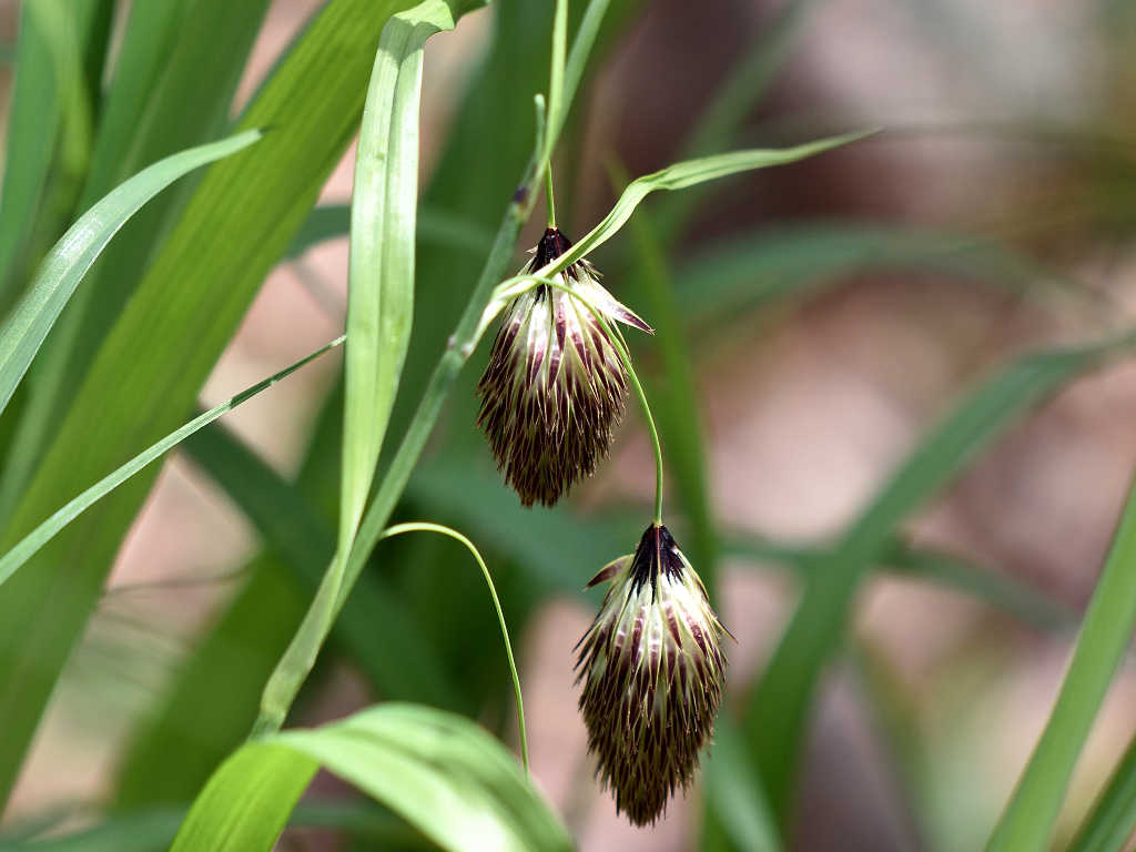 花の色は紫色を帯びた褐色である。 3〜6個の小さな花が穂状につく