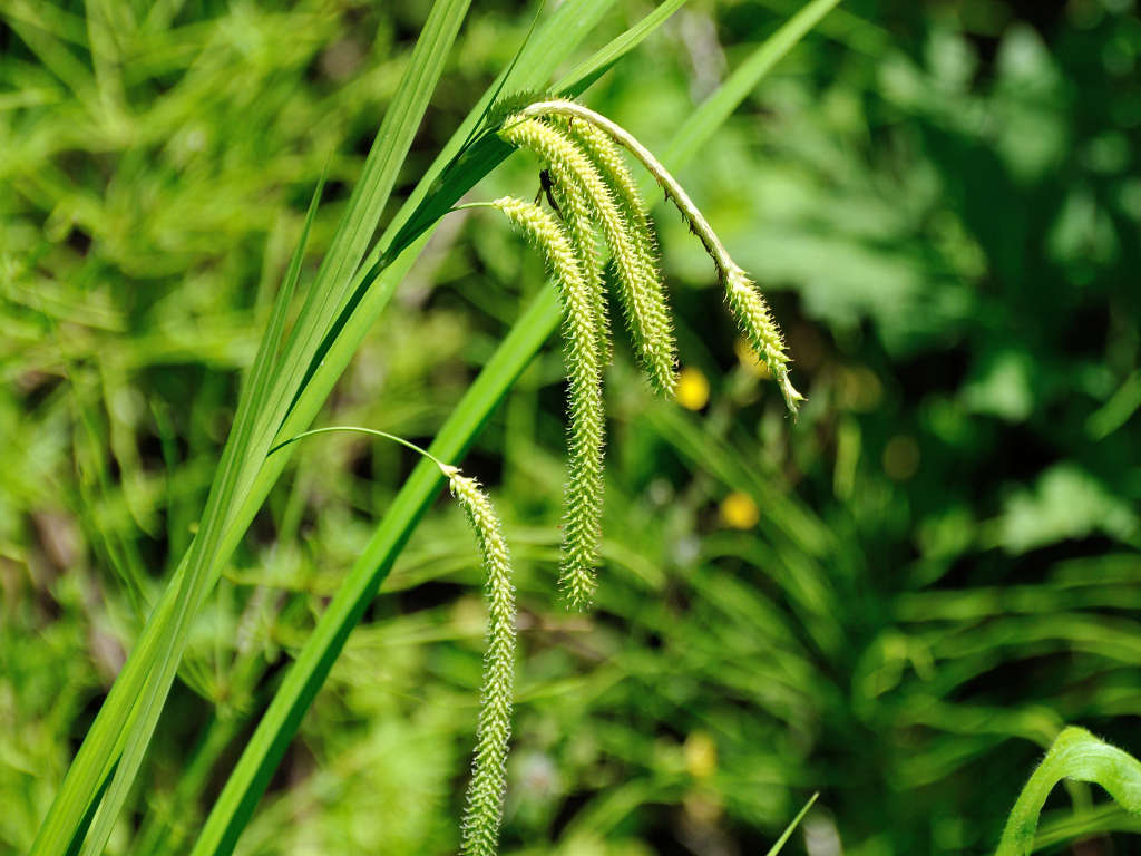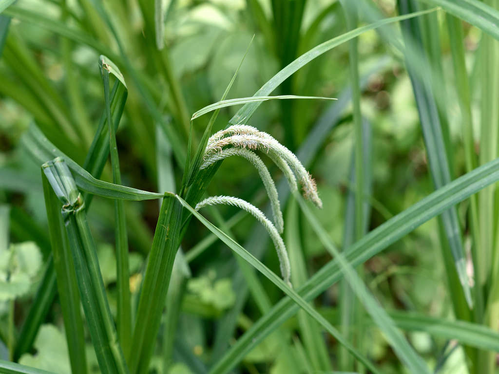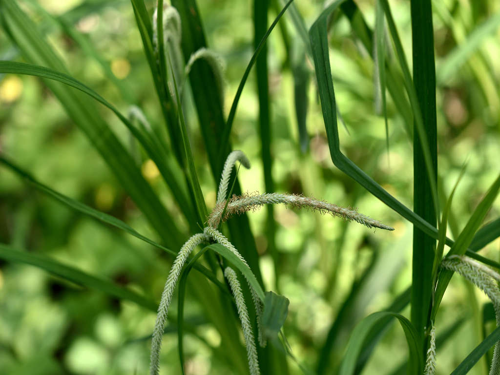 小穂を5〜7個つけ 頂小穂は雄性、下方の小穂は雌性で長い柄があり、垂れ下がる