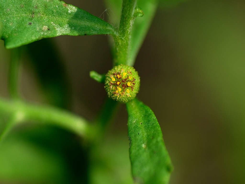 球形の花を押しつぶすと黄色い種を吐くことから