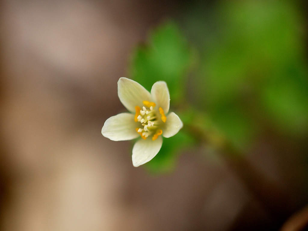花は白色 花弁に見えるのはガク 花の中央には黄色う花弁が5枚ある