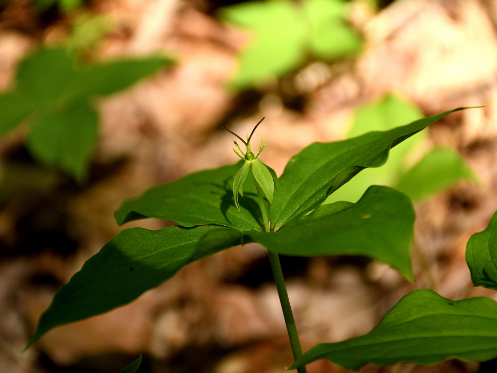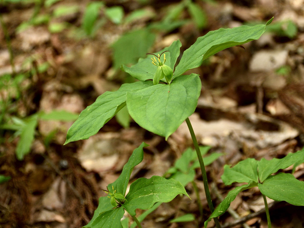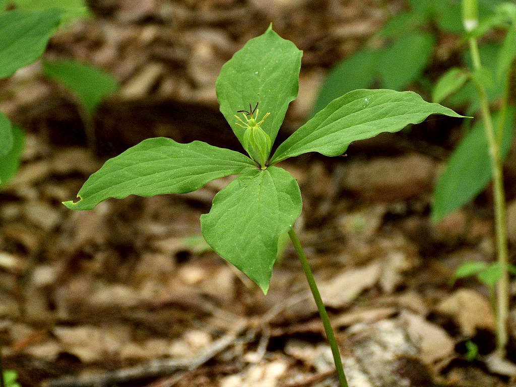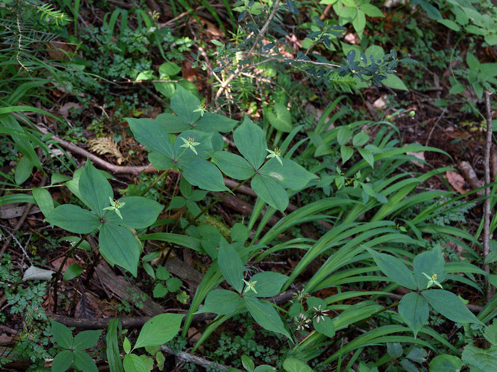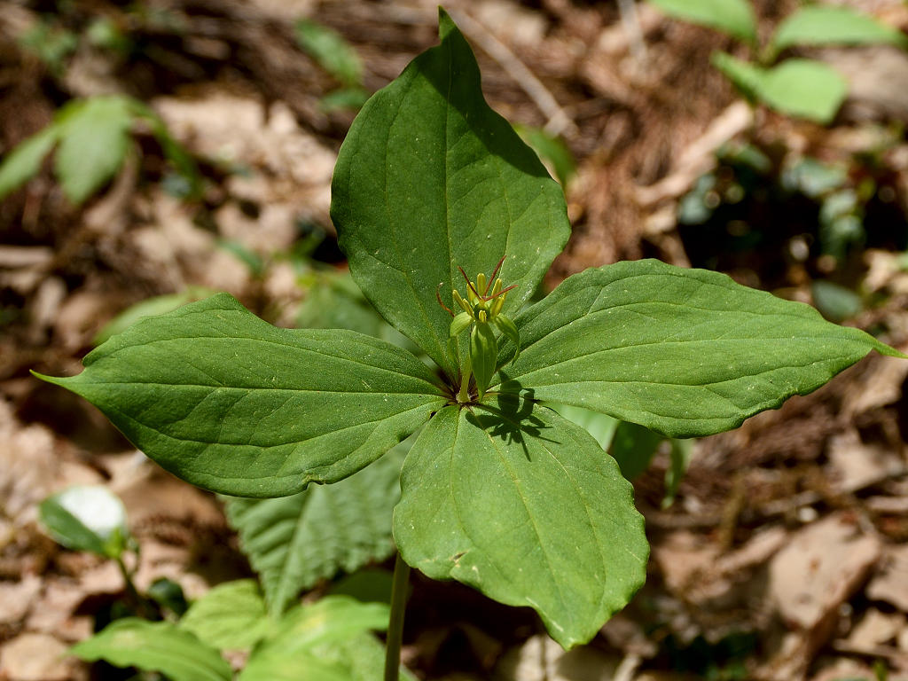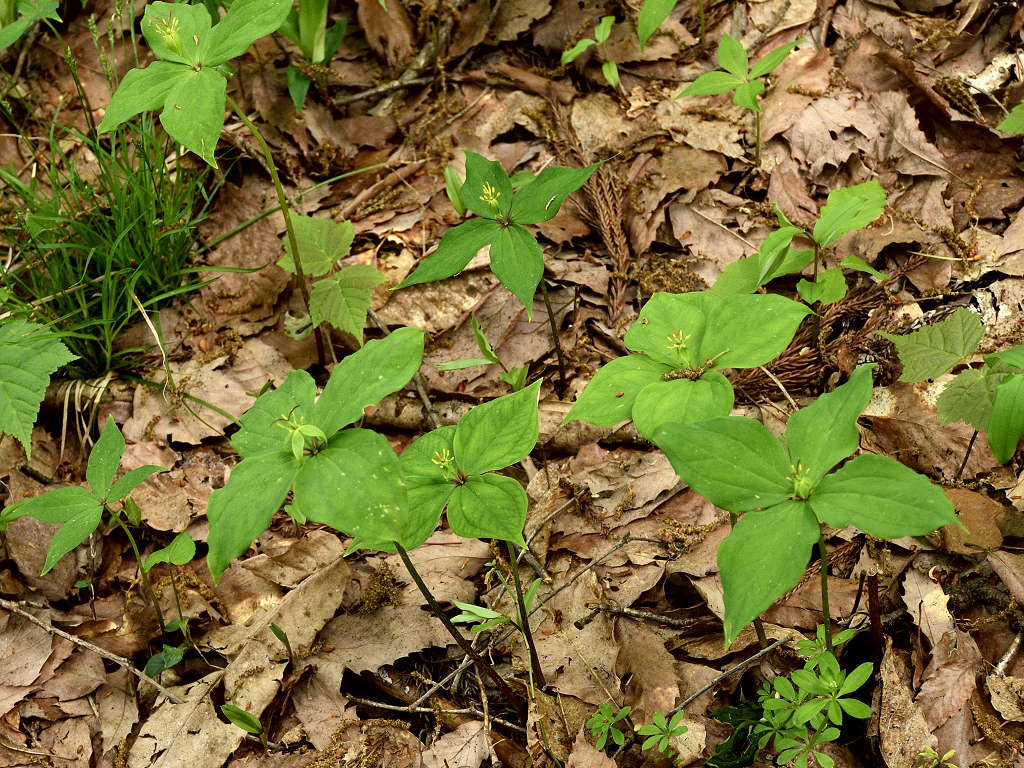 花びら4枚黄色みがかった緑色 雄しべは8本 中央に雌しべがある