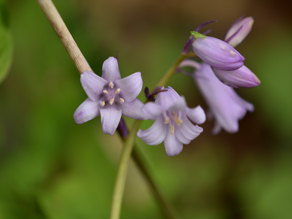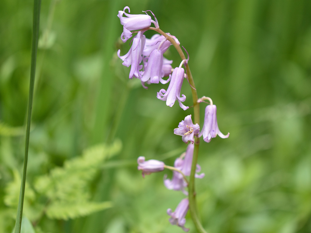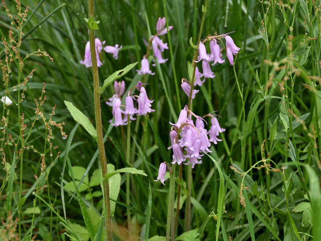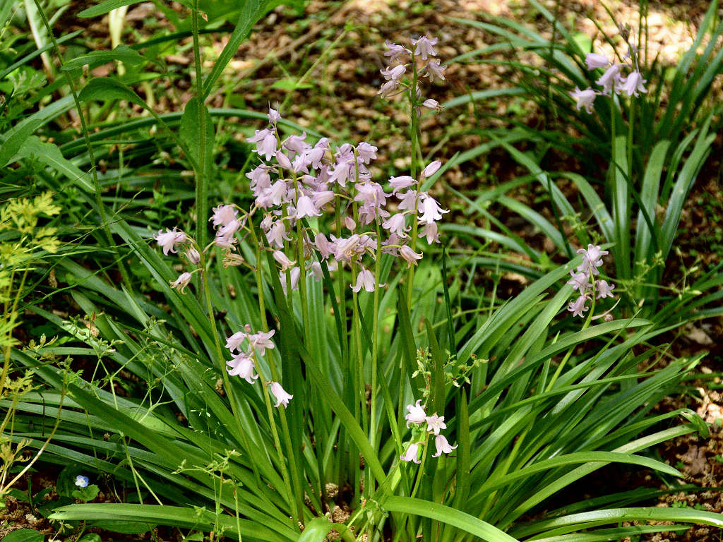 花茎が直立し、 総状花序に長さ2〜3センチの釣鐘形の花を下向きにつける。 花色は青紫が多いが、淡紅色や白色のもある