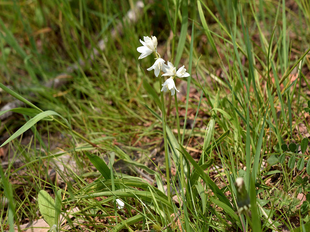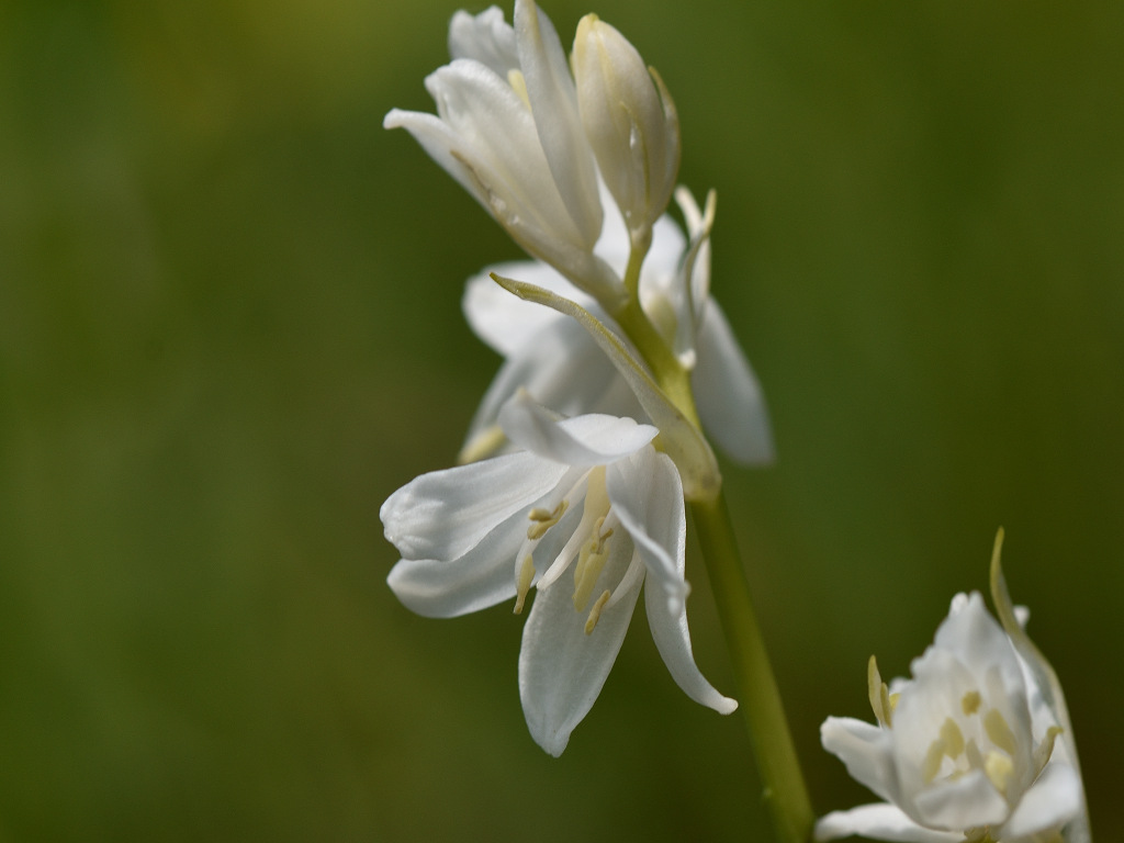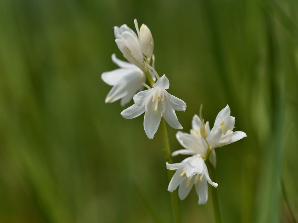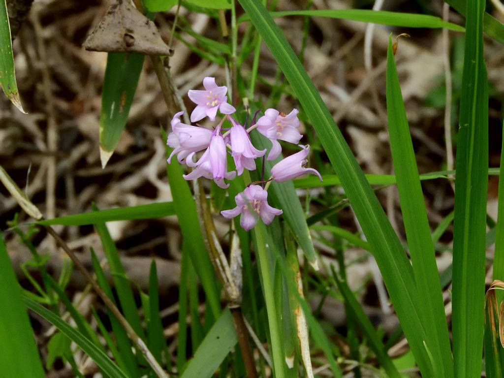 花茎が直立し、 総状花序に長さ2〜3センチの釣鐘形の花を下向きにつける。 花色は青紫が多いが、淡紅色や白色のもある