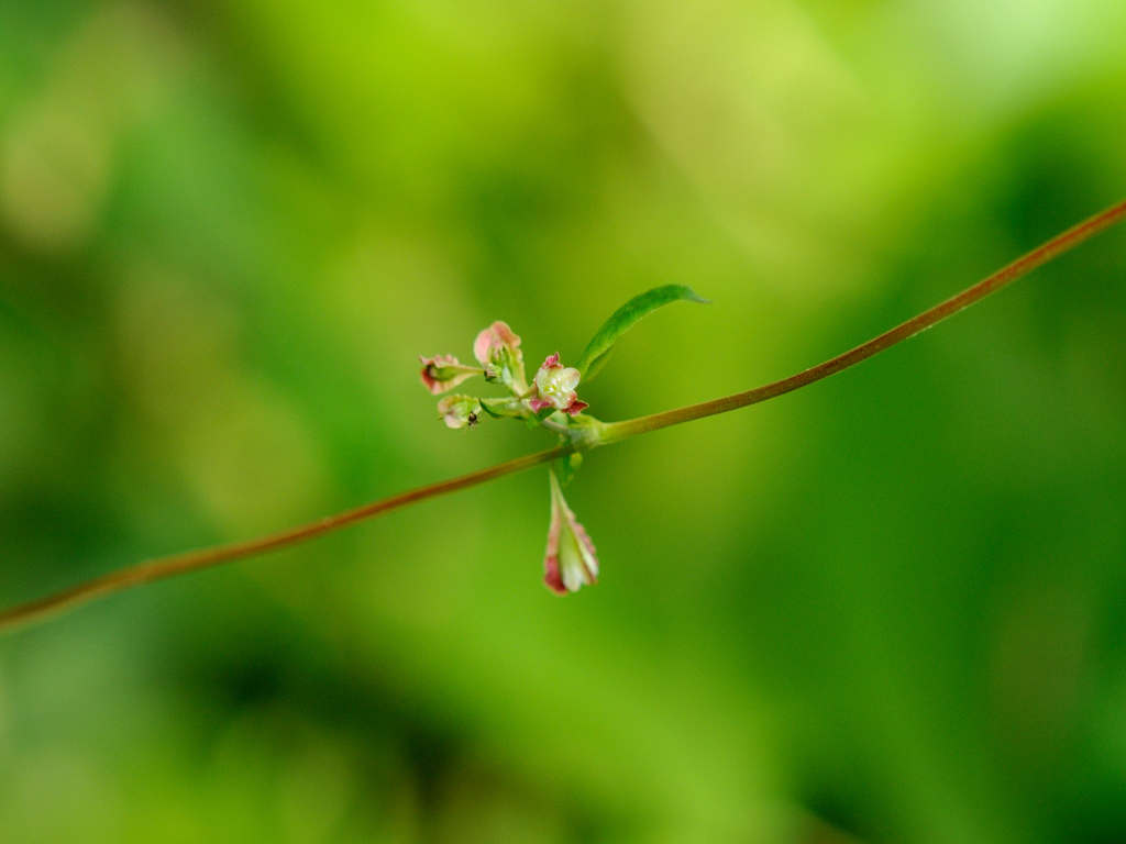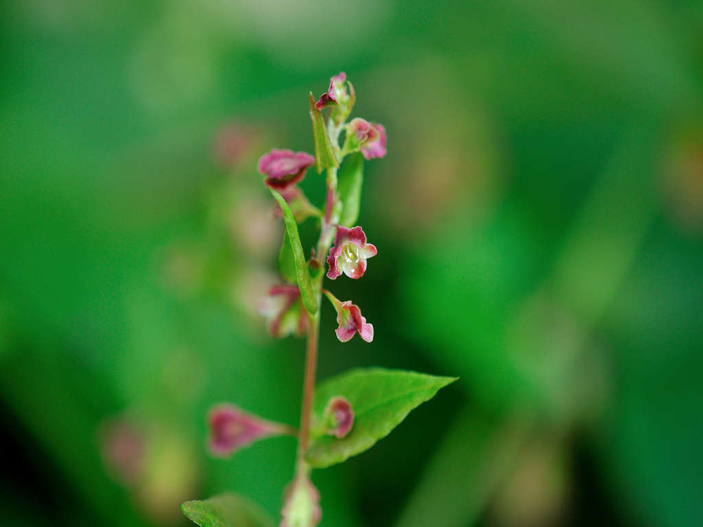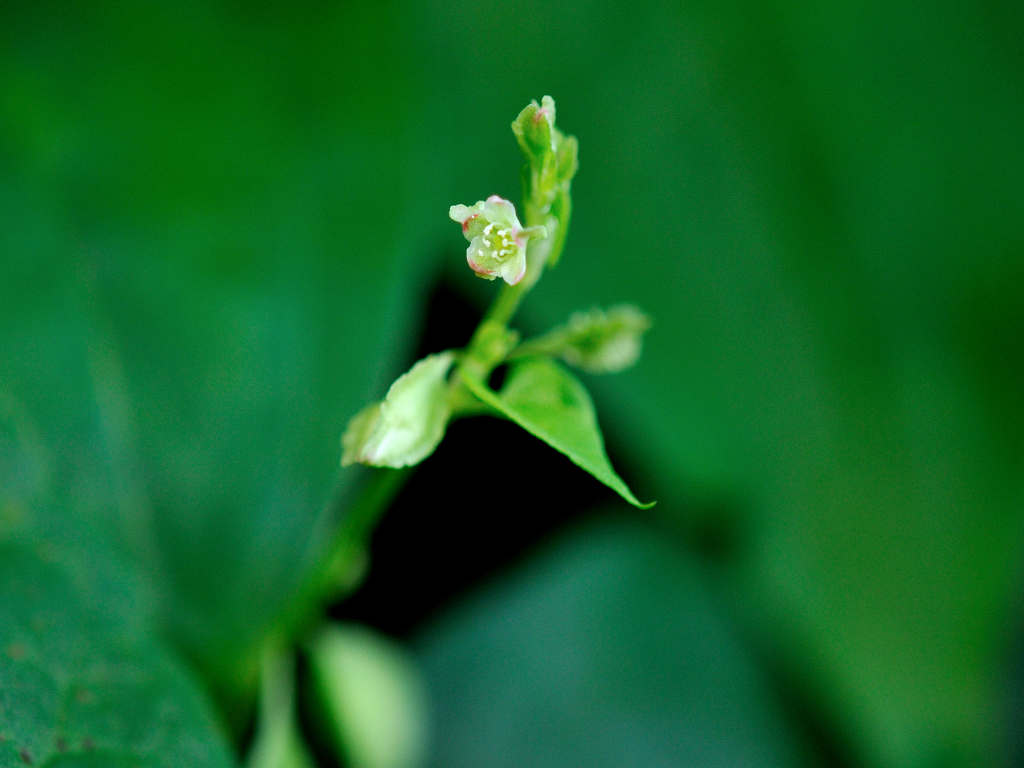 花の色は「目立たない」(淡白緑色)、茎の腋に輪生か、短い花序(花の集合の状態)をだして咲く