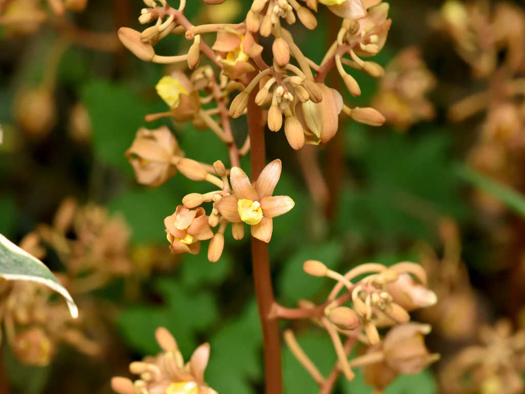茎の中程から枝別れし 茶色の花を付ける