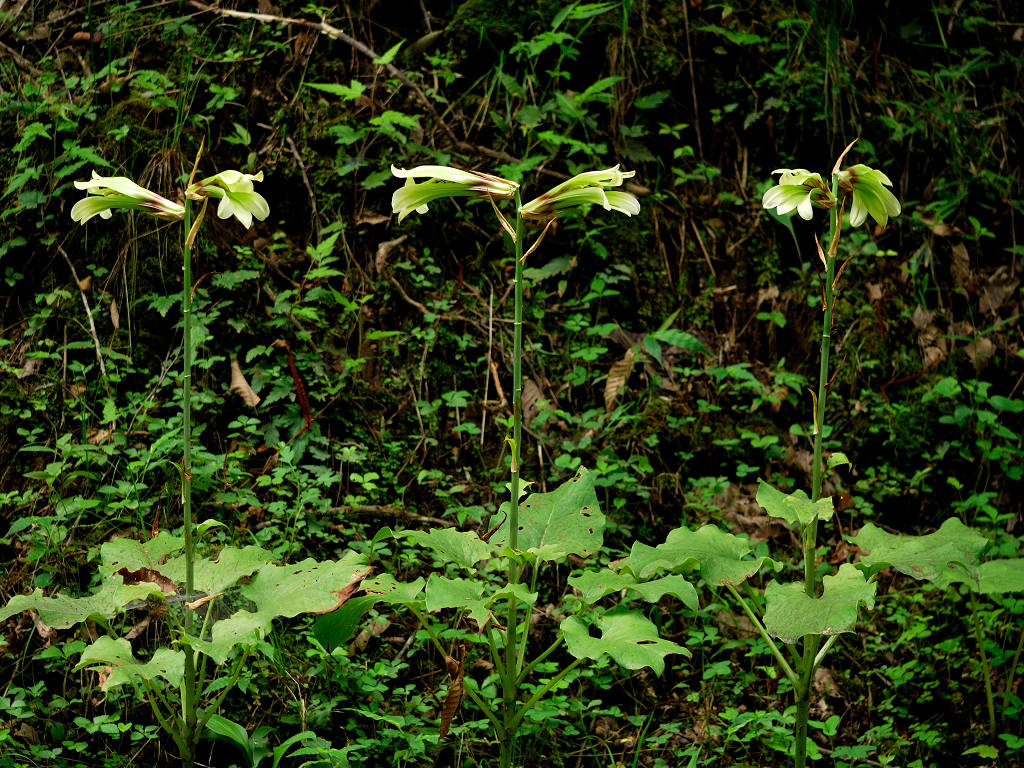 | 和名の由来 | 花が咲く頃、茎の一番下側につく葉が枯れている(実際は枯れていないのが多い)。これを歯「葉」の少ない「姥」に見立てて | |