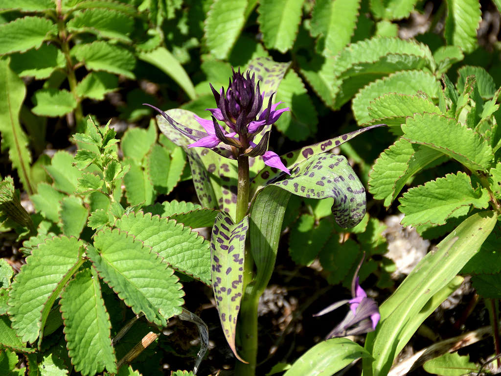 葉が鶉の卵のような斑紋があるハクサンチドリ