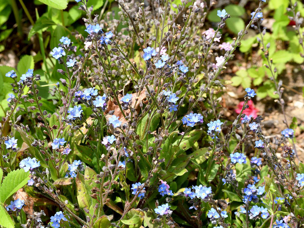 花の色は青紫色で、喉の部分が黄色 花冠は5つに裂けて横に開く