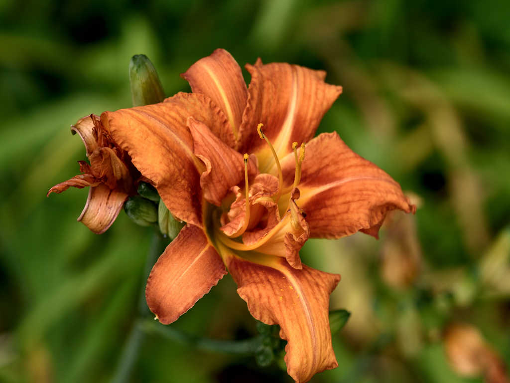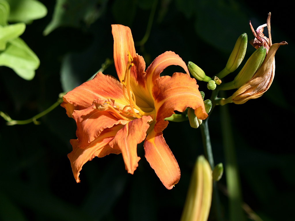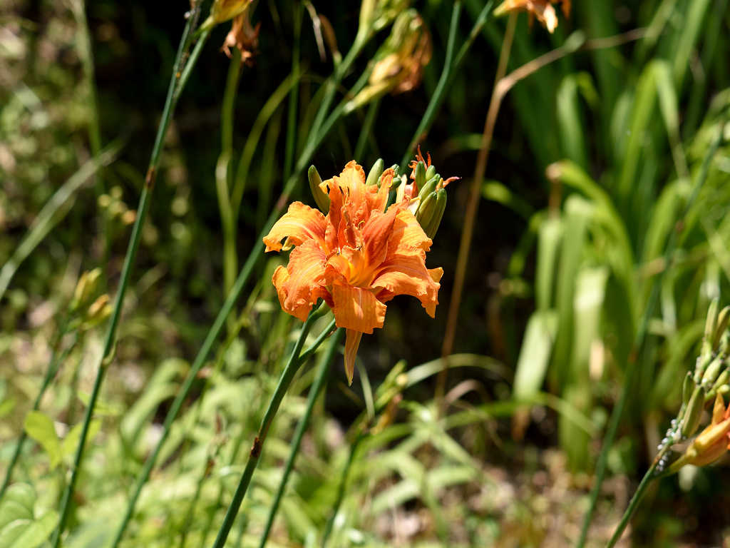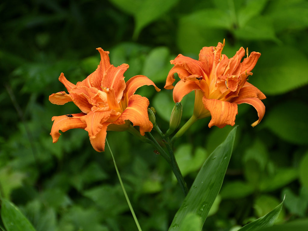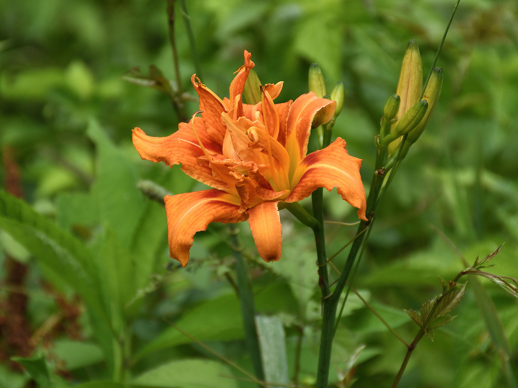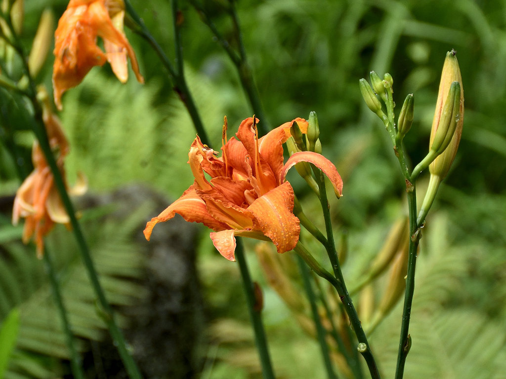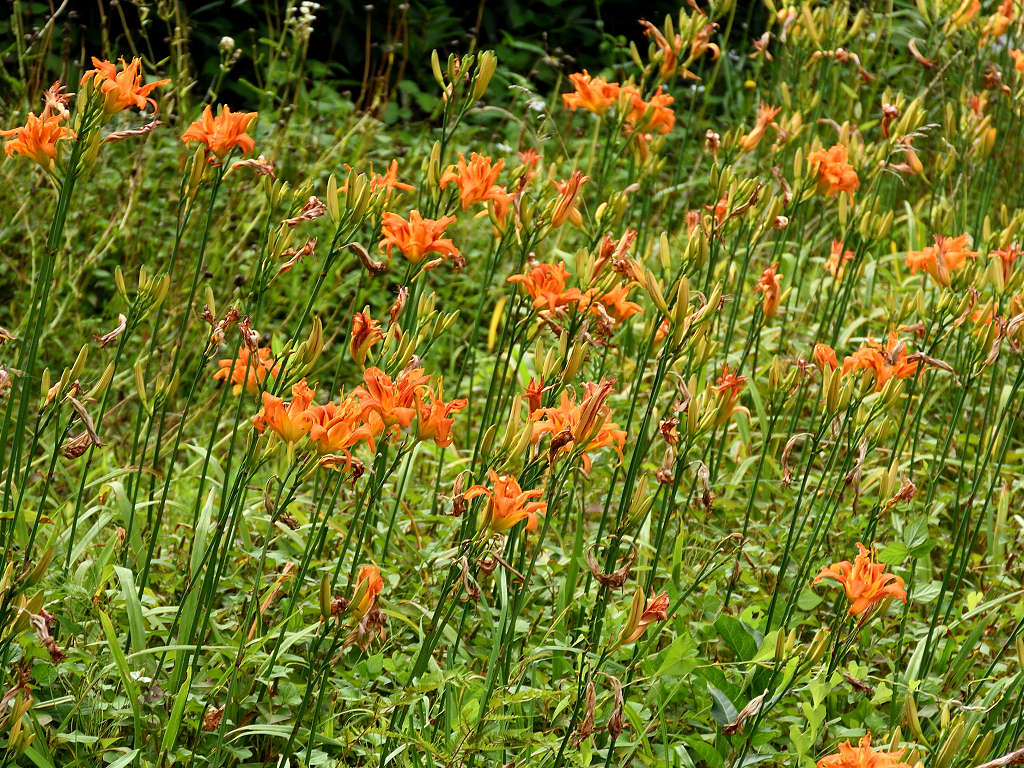 この仲間の中国名は「萱草」という。これを音読みにしたのが「カンゾウ」 仲間と区別するため、八重咲き種を「ヤブカンゾウ」