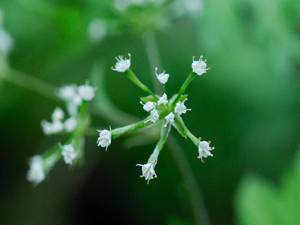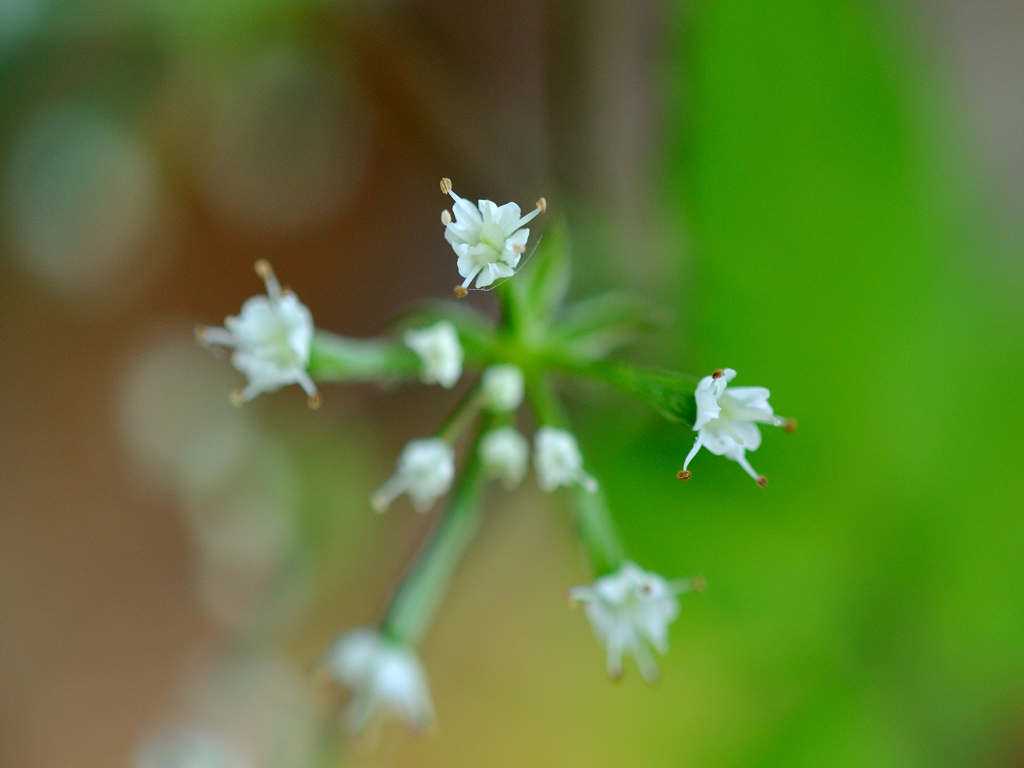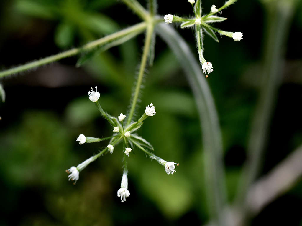 枝先に1個つずつ、花径1〜2ミリの小さな白い花を疎らにつける