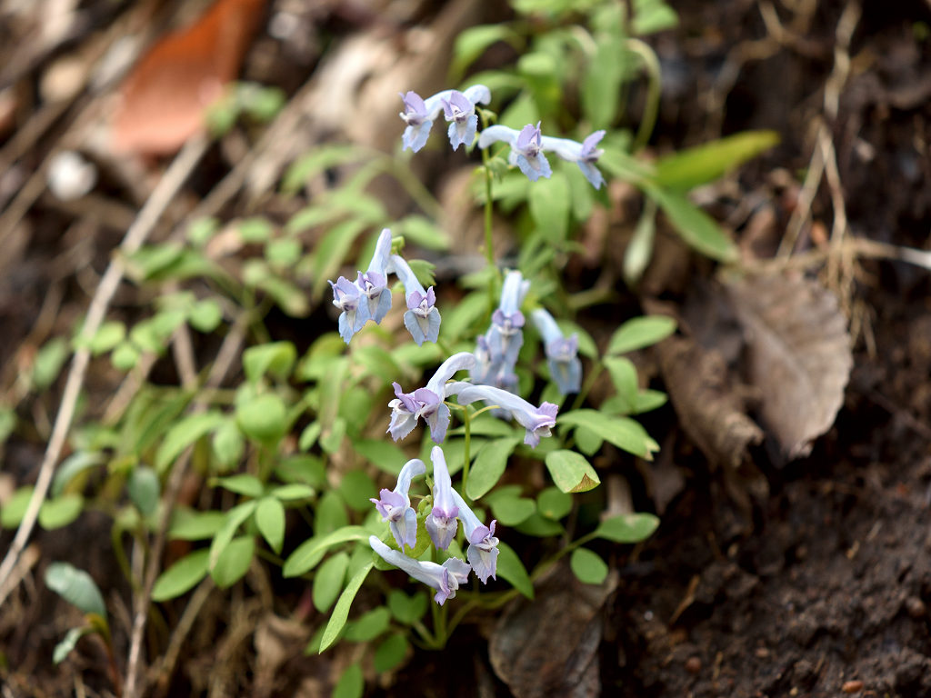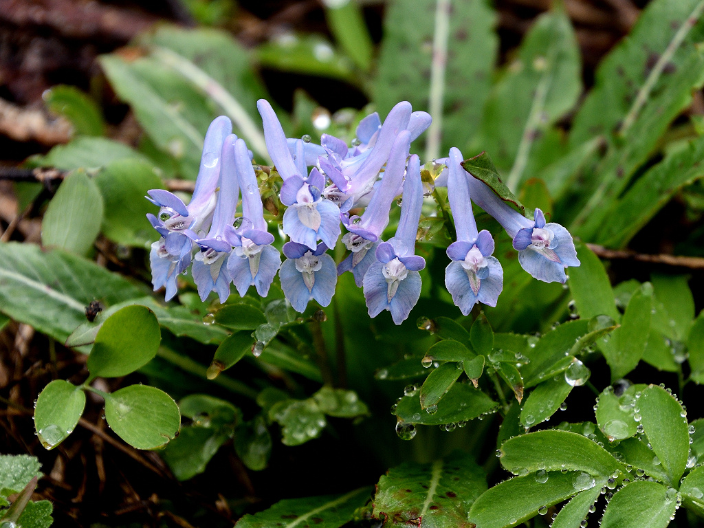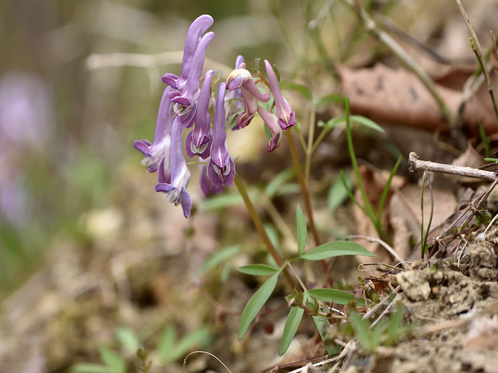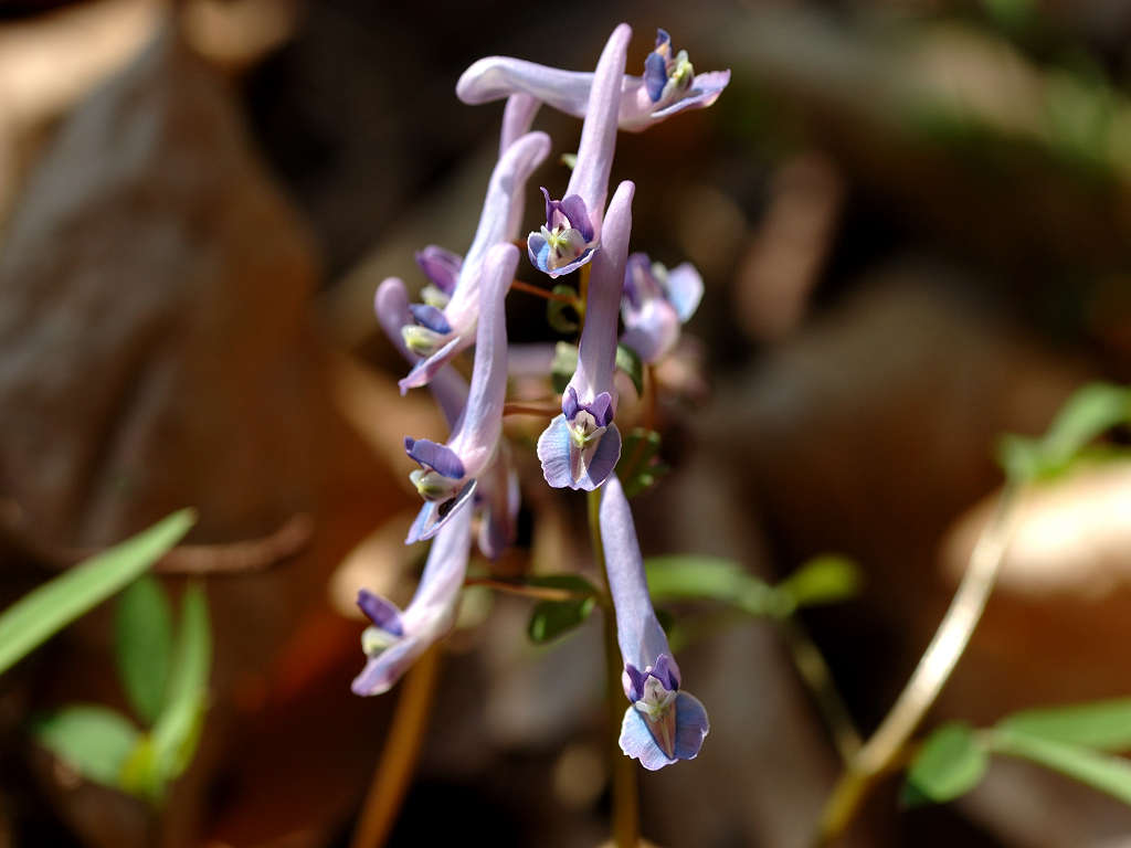 花は細長く筒状 正面は唇状に開く 、花の後ろに距がある