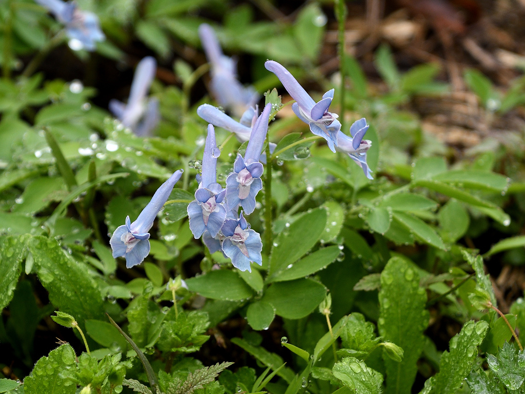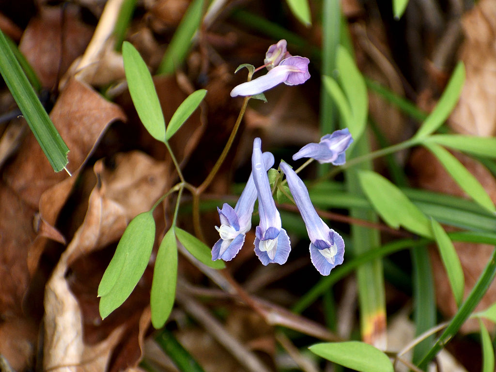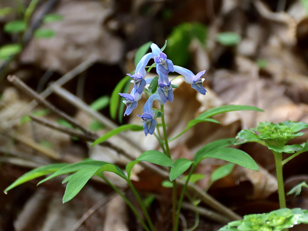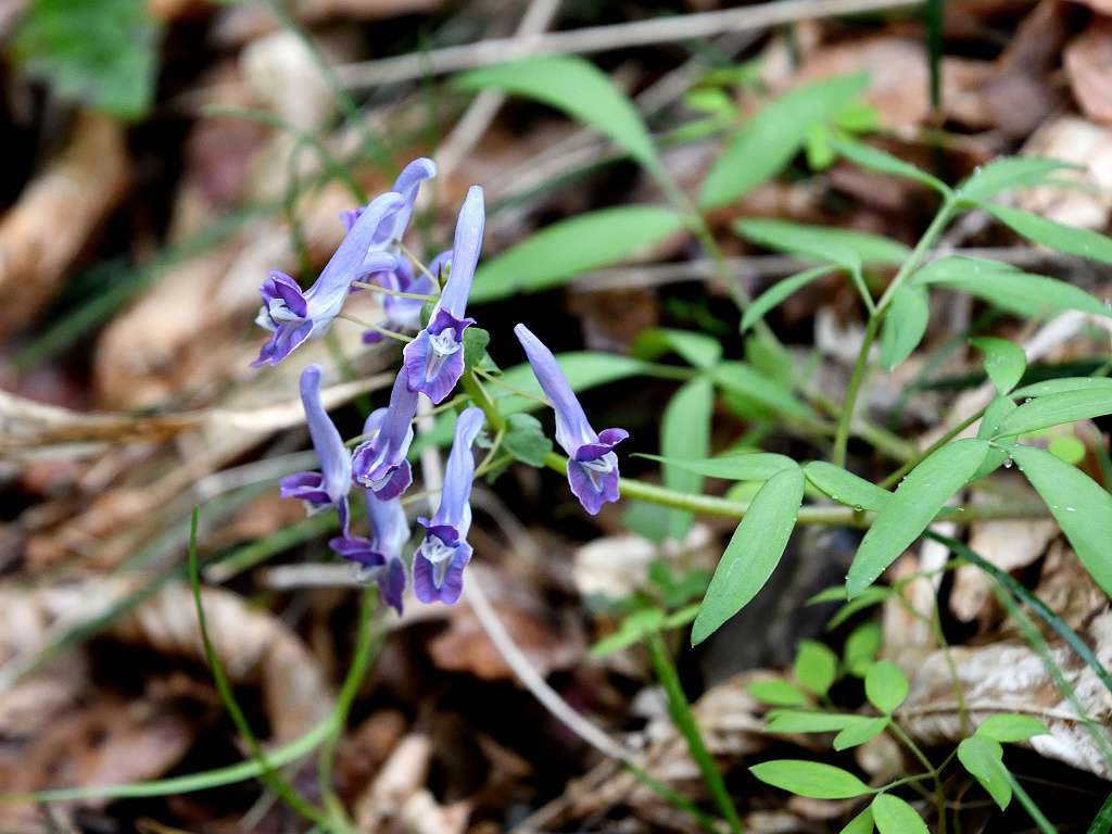 花は細長く筒状 正面は唇状に開く 、花の後ろに距がある