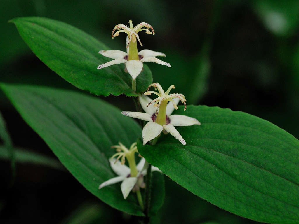 葉の基幹部から花柄を伸ばし1個の花を付ける 花弁は6枚水平に展開するのが特徴