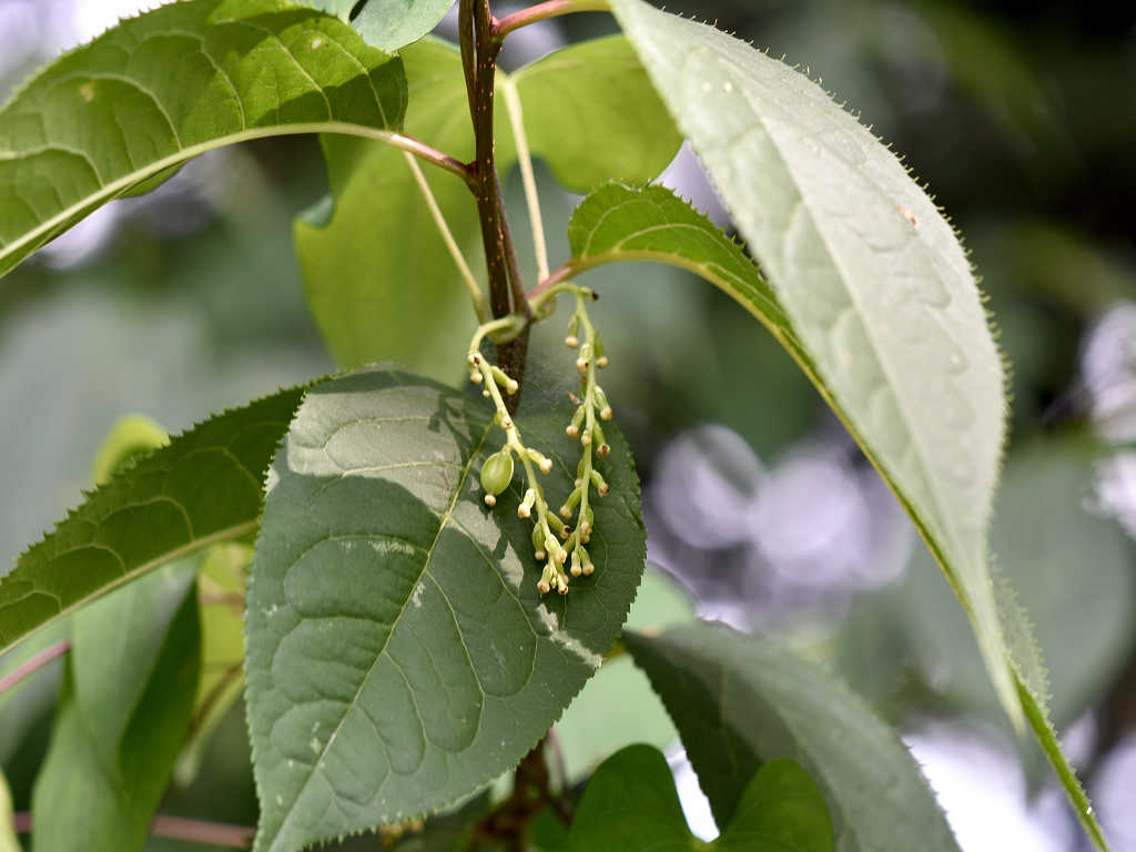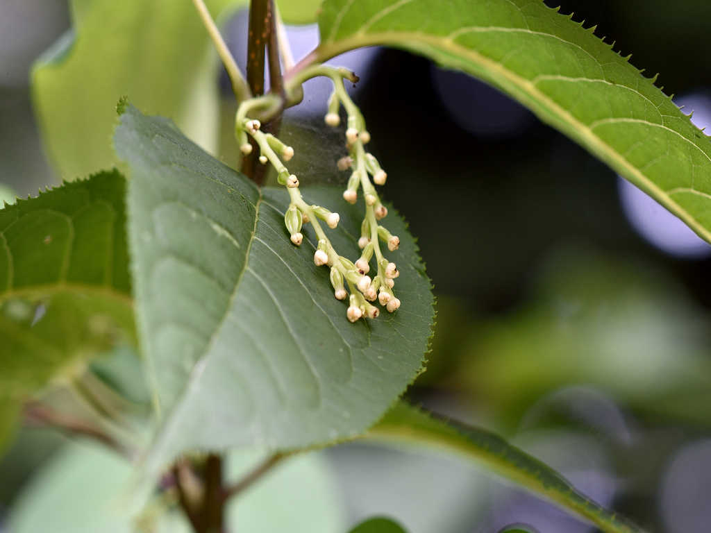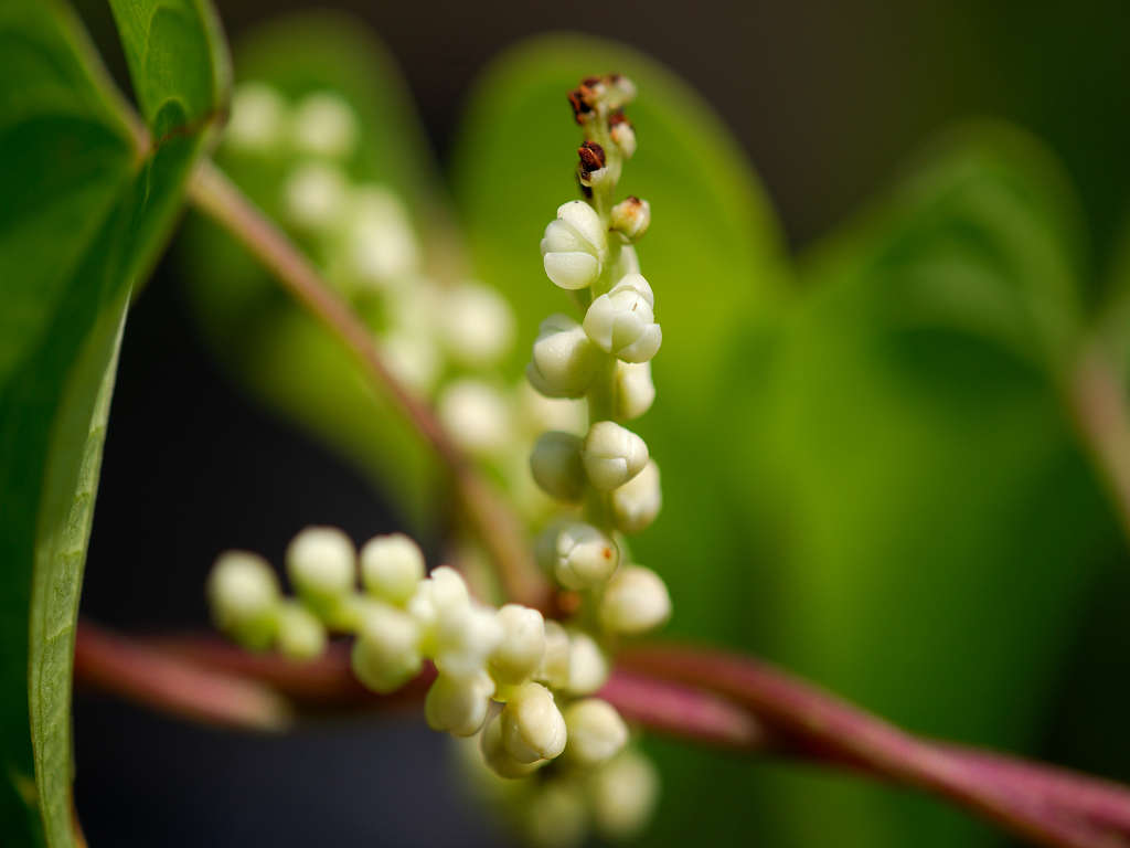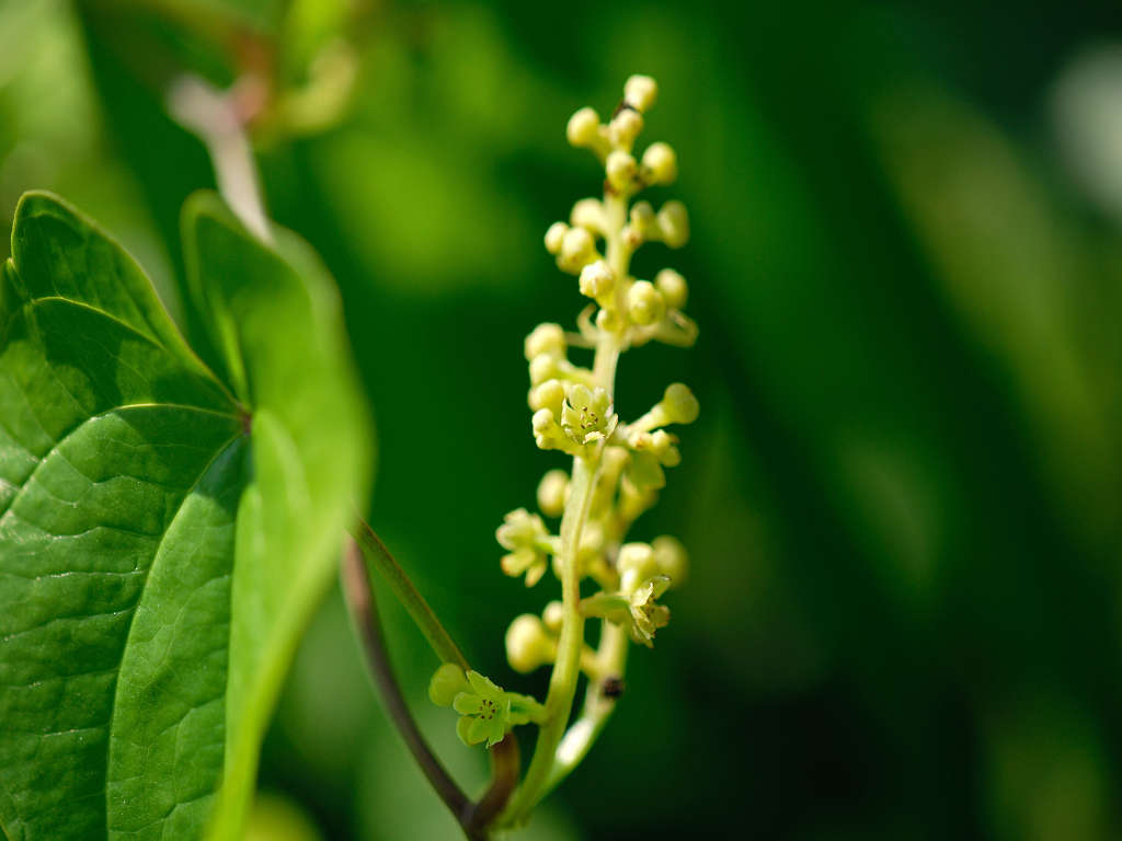 茎は樹木などに巻き付く 花序が立ち上るのは雄花で雄株 垂れ下がって咲くのは雌花で雌株