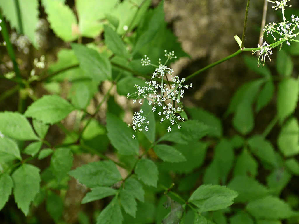 「セリ」に似るが、大形で「山」の林の中に生える それで付いた