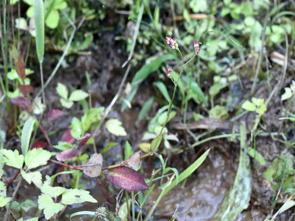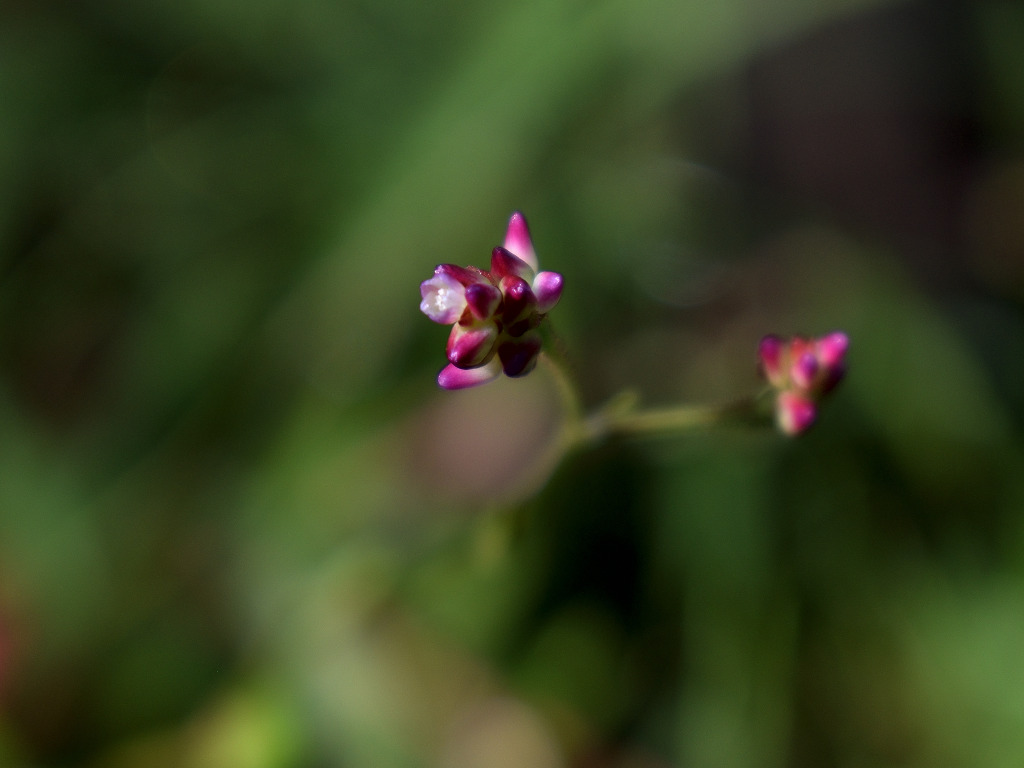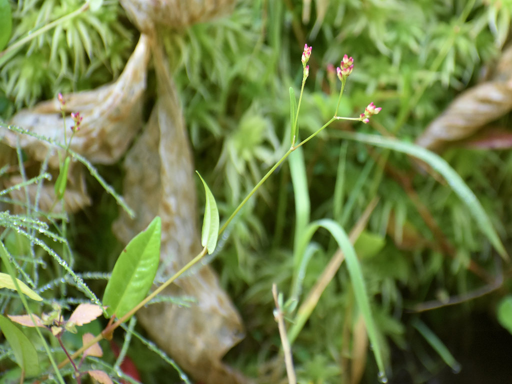 茎は地を這いながら成長し 枝先に淡紅色の花を付ける 花柄に腺毛がある