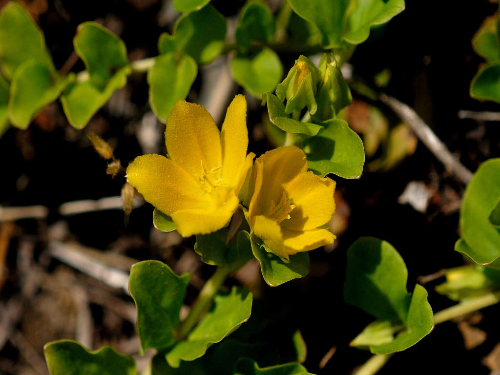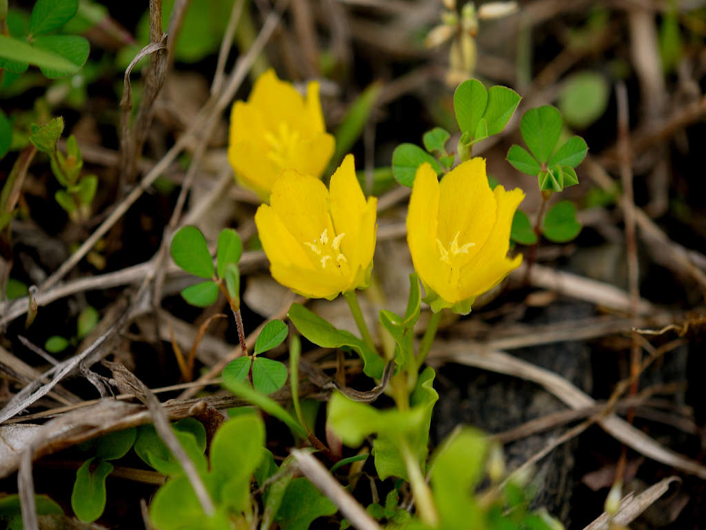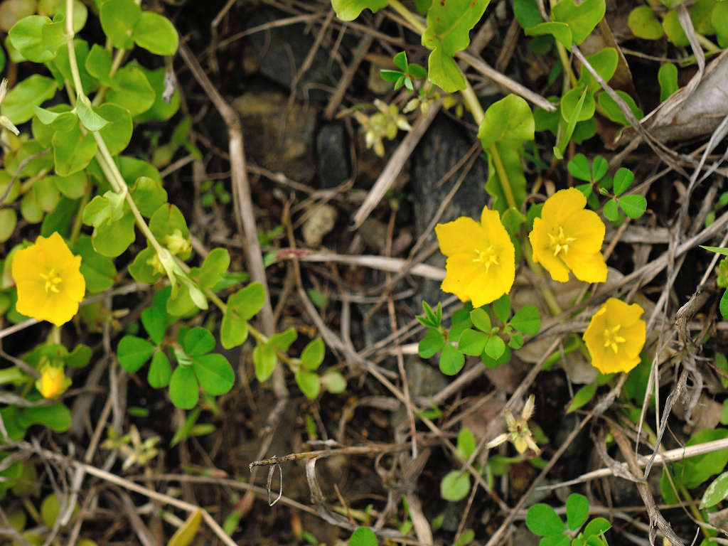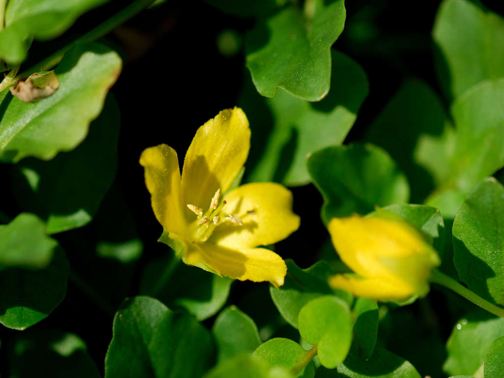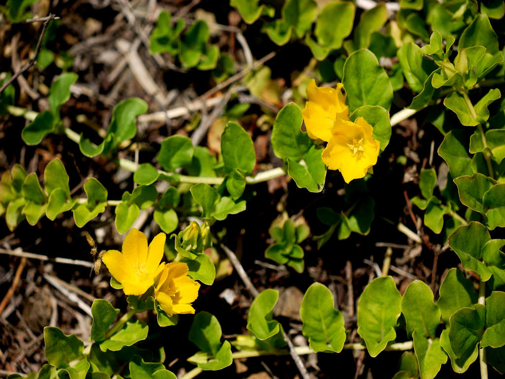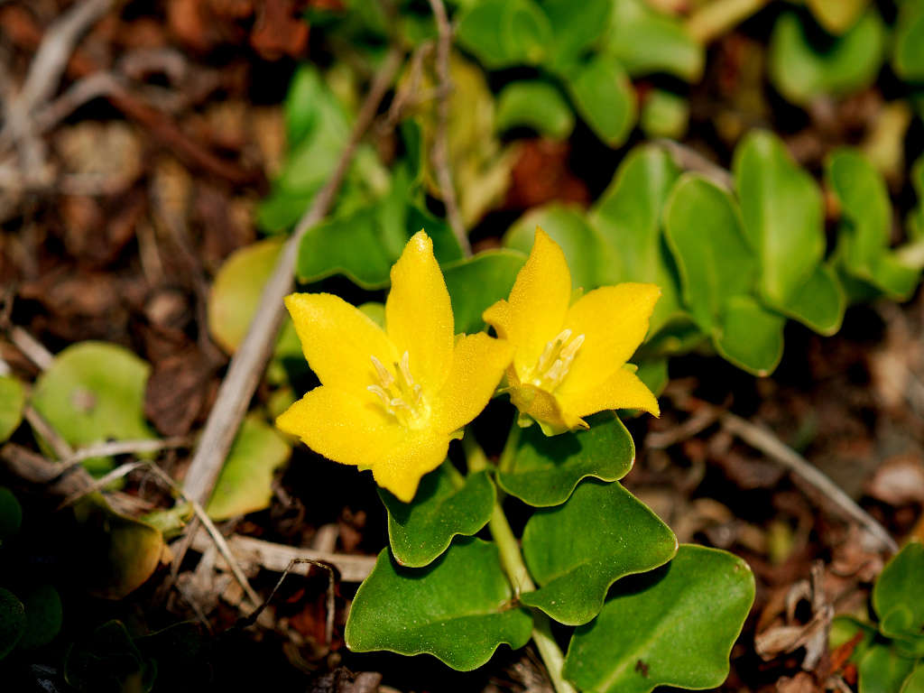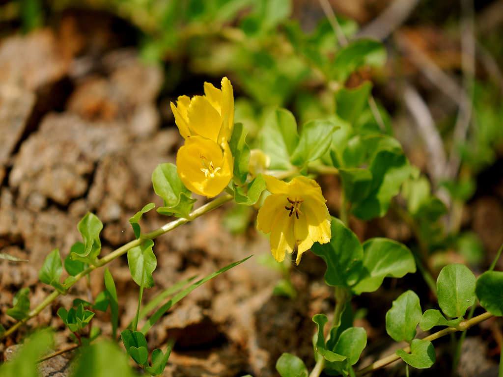 葉腋から花柄を伸ばし、2cm程の黄色の花をつける。花冠は5裂する