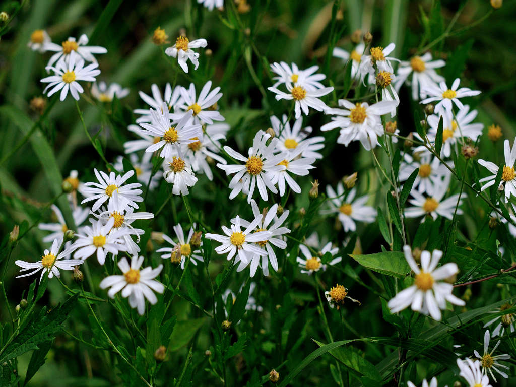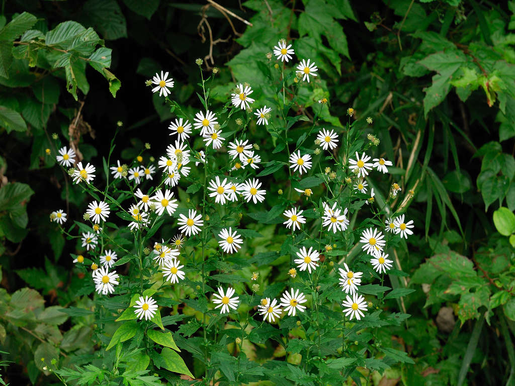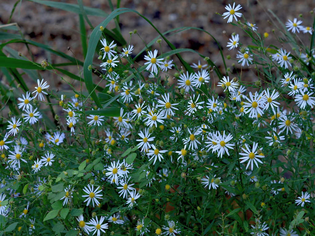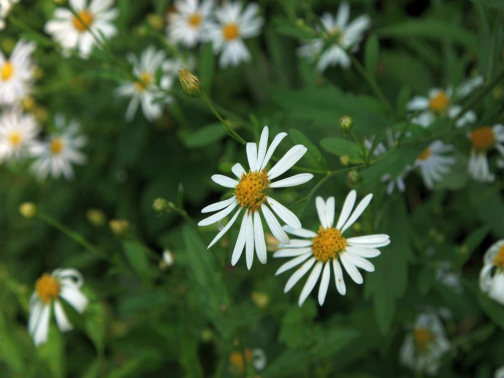 茎は枝を多く分け横に広がる 花は白色 花弁状の舌状花は15枚程度付く