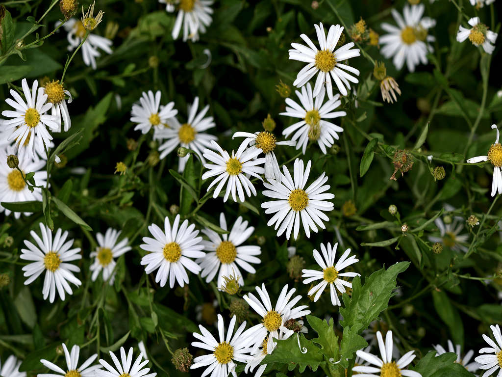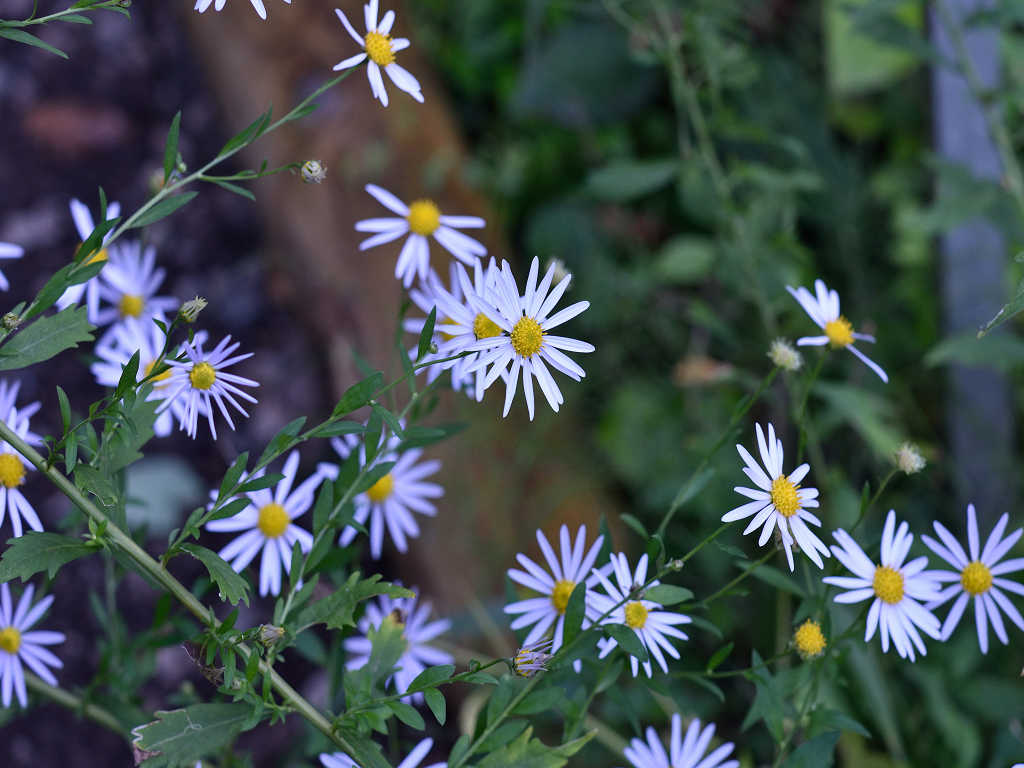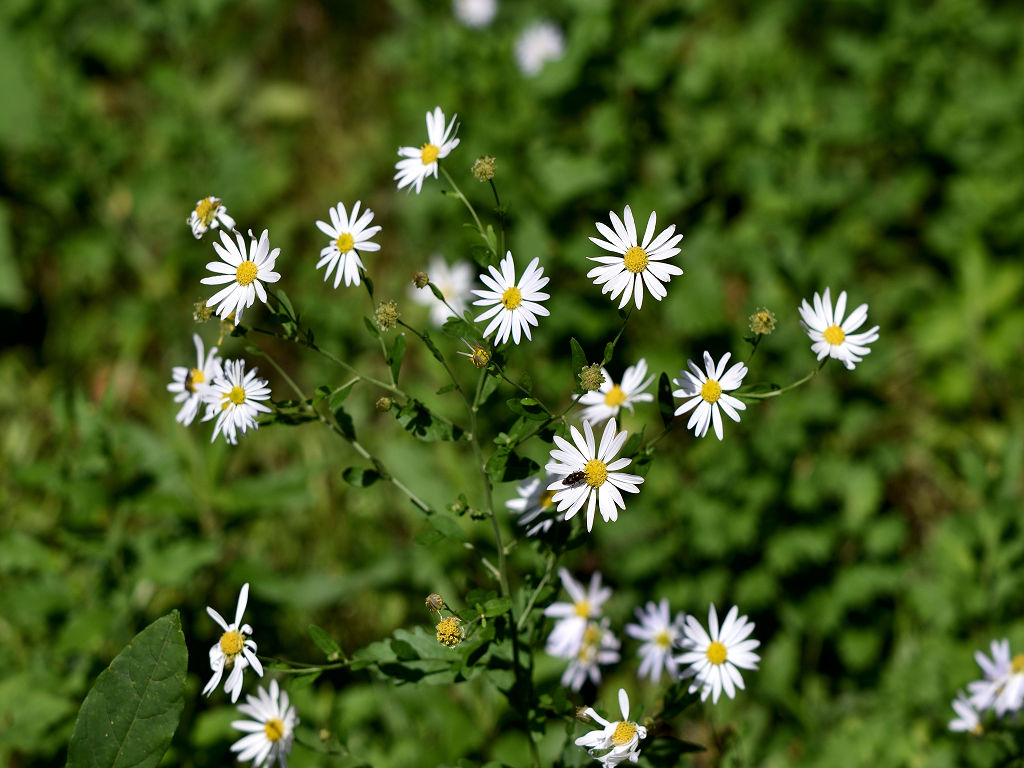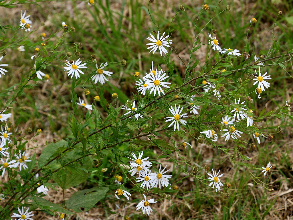 茎は枝を多く分け横に広がる 花は白色 花弁状の舌状花は15枚程度付く