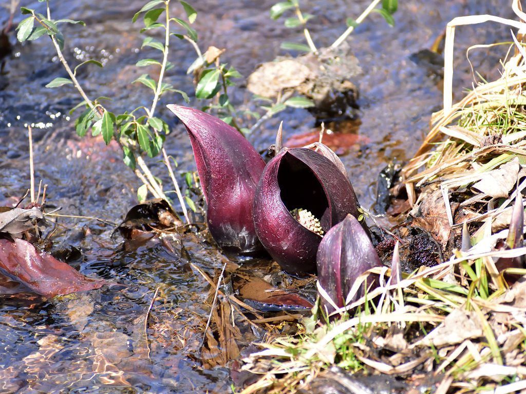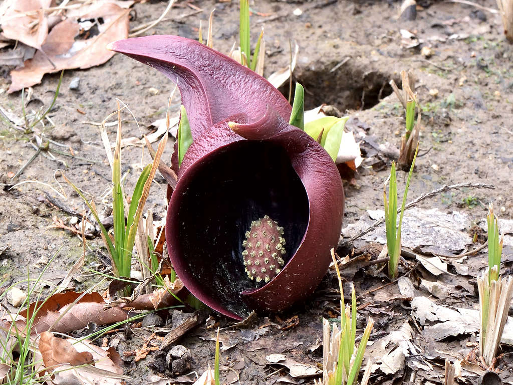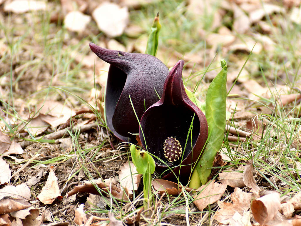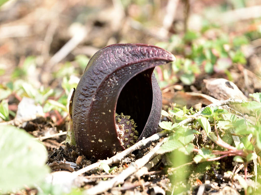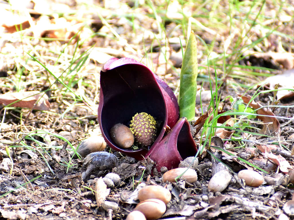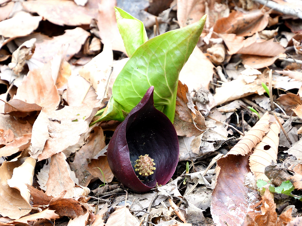 頭巾形の花弁に見えるのが仏炎包 中に花の集団がある