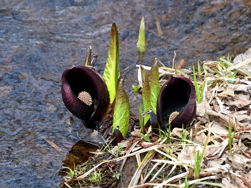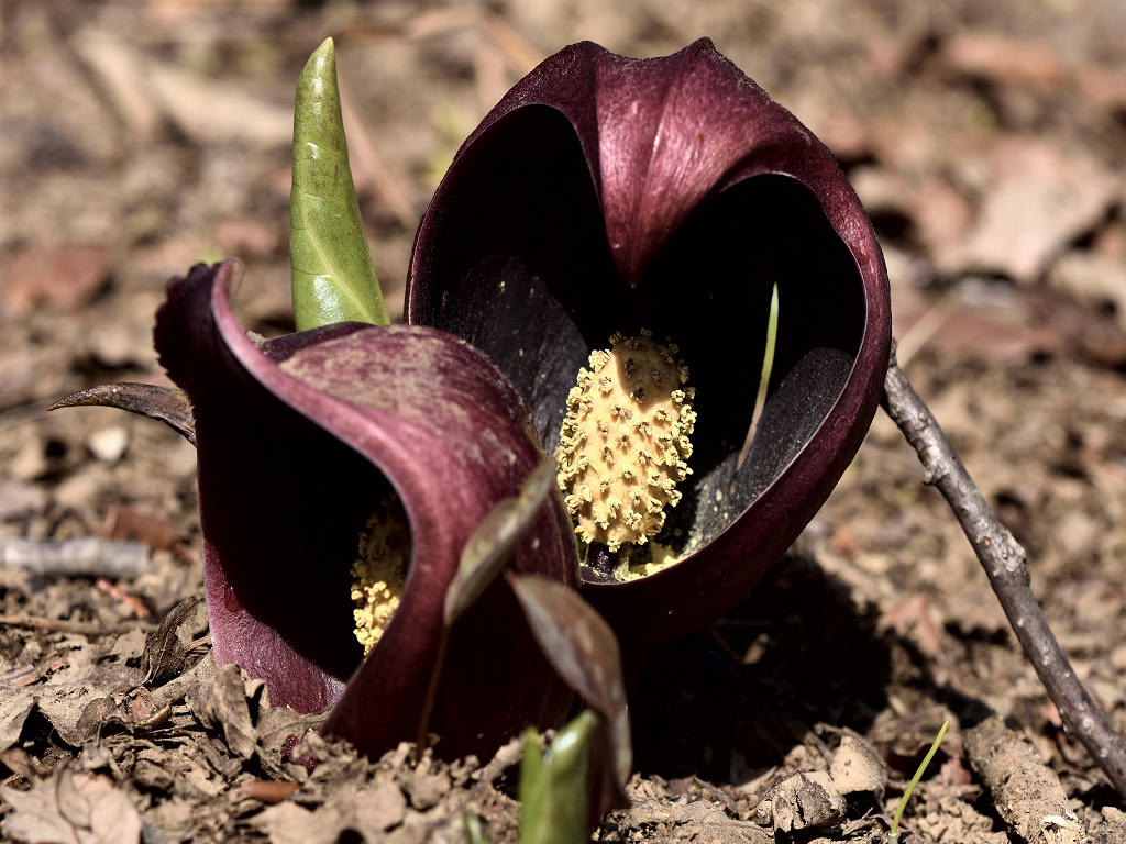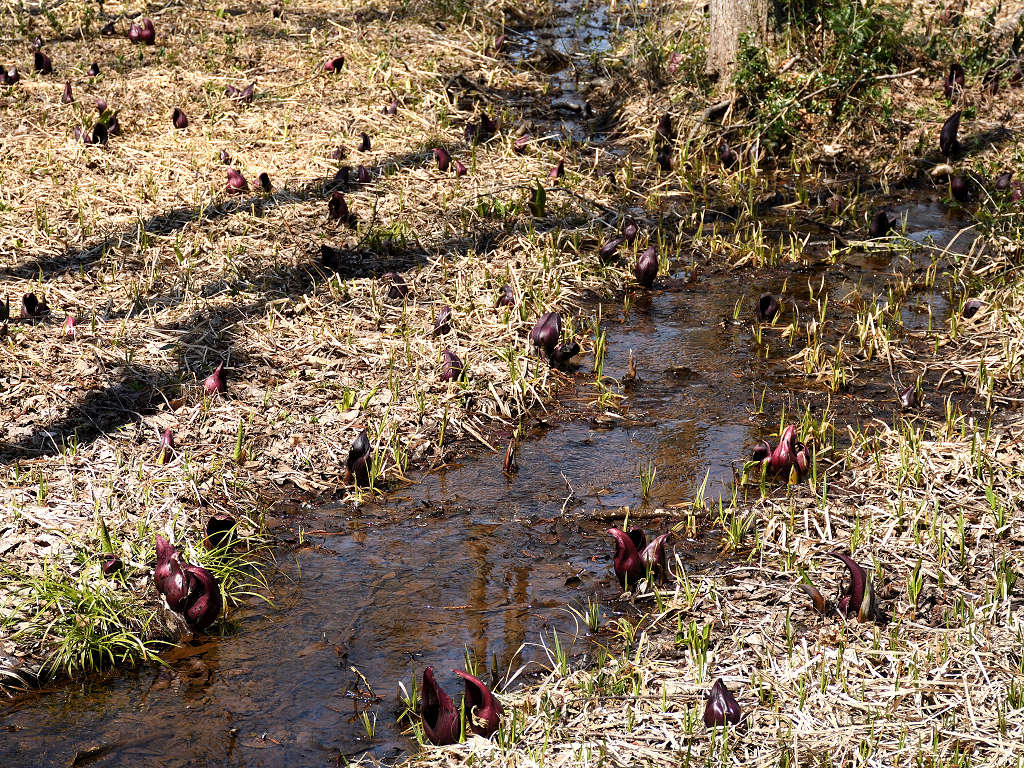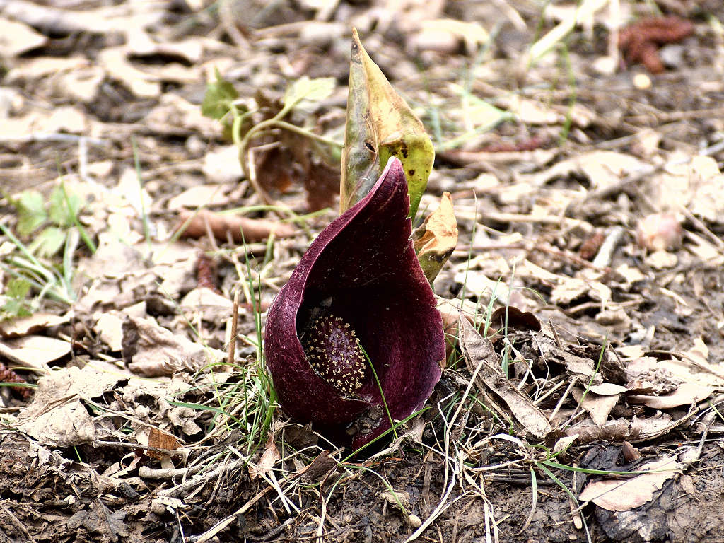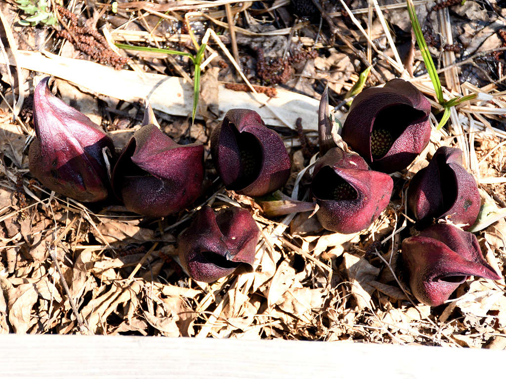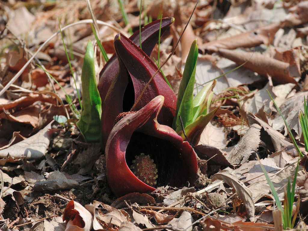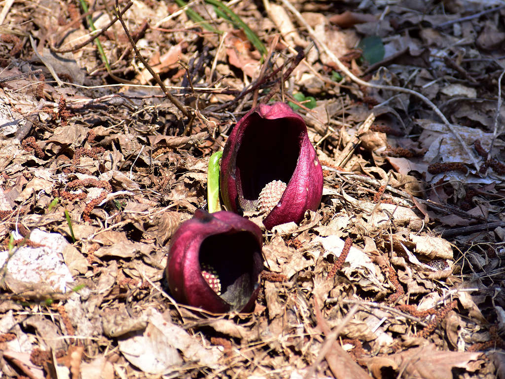 頭巾形の花弁に見えるのが仏炎包 中に花の集団がある