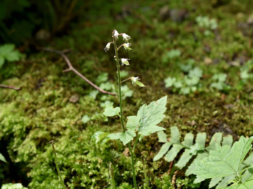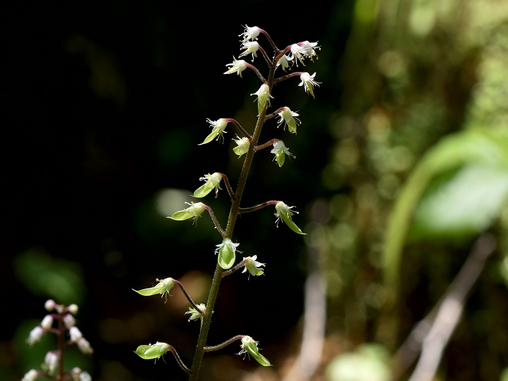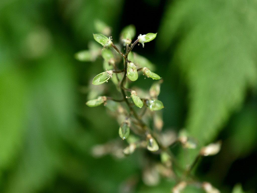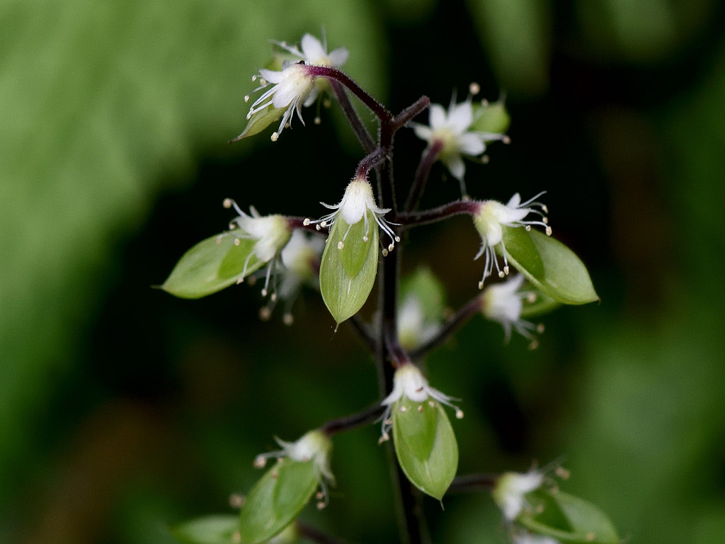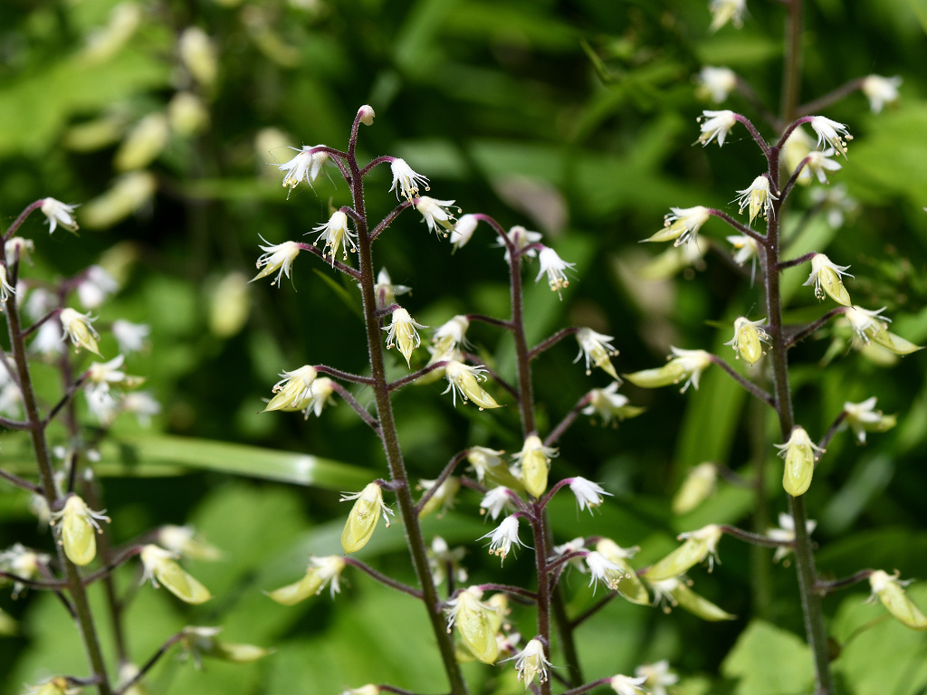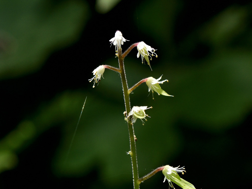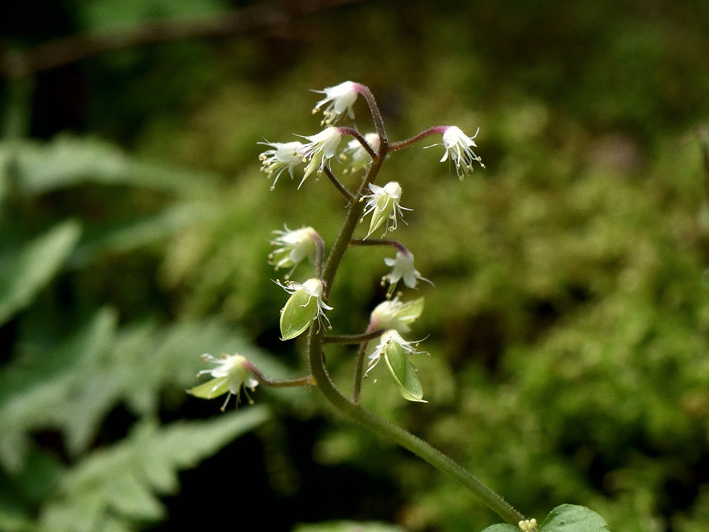 花は白色 5裂したガクが花弁のように見える 本当の花弁は糸状 実は大きな舟形と小さな長楕円形