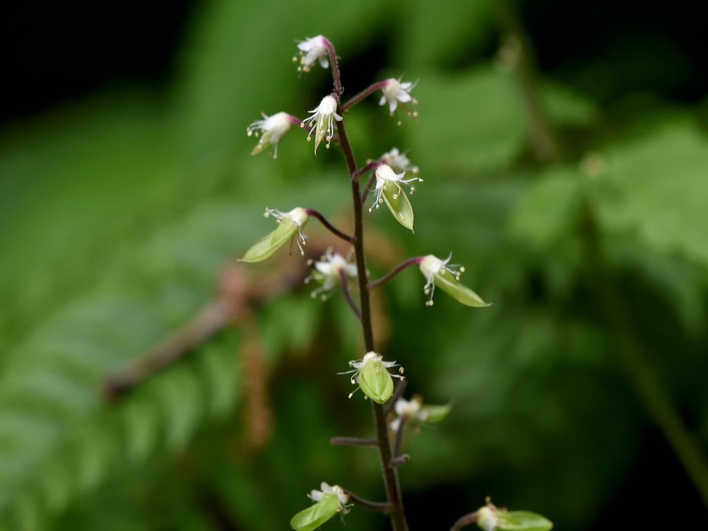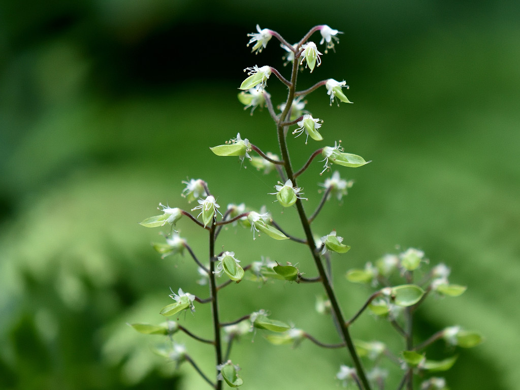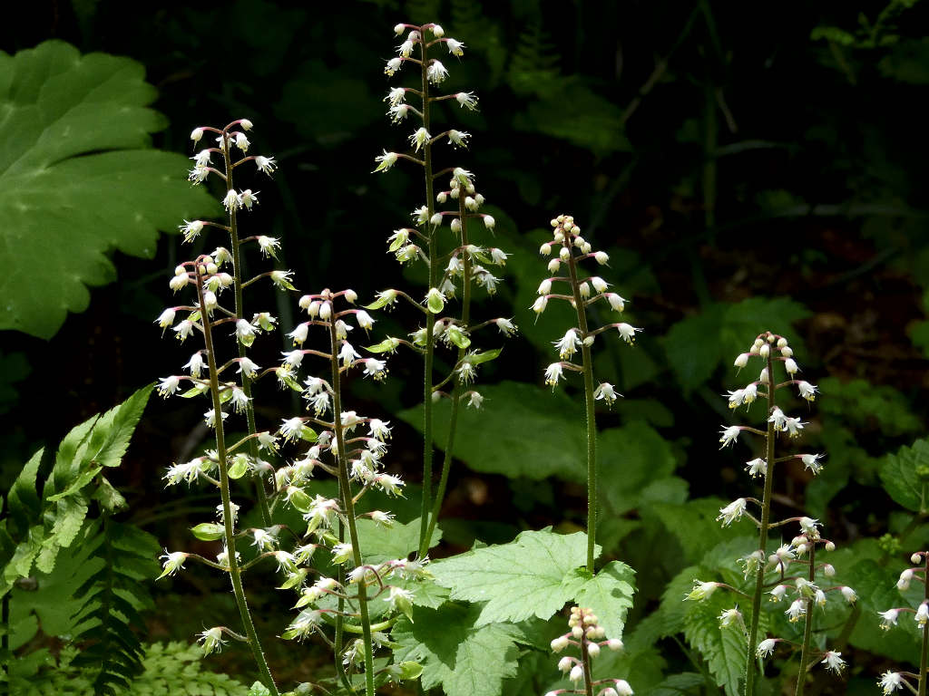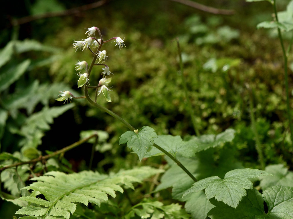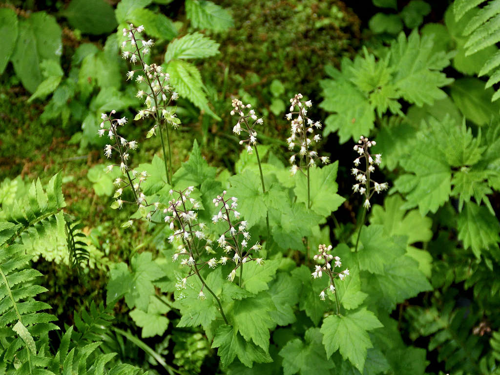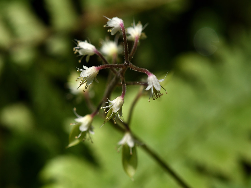 花は白色 5裂したガクが花弁のように見える 本当の花弁は糸状 実は大きな舟形と小さな長楕円形