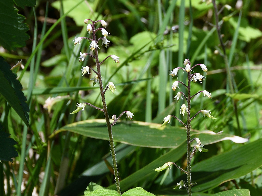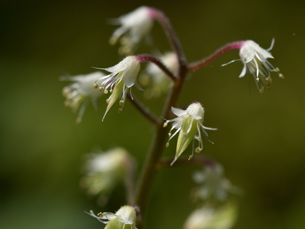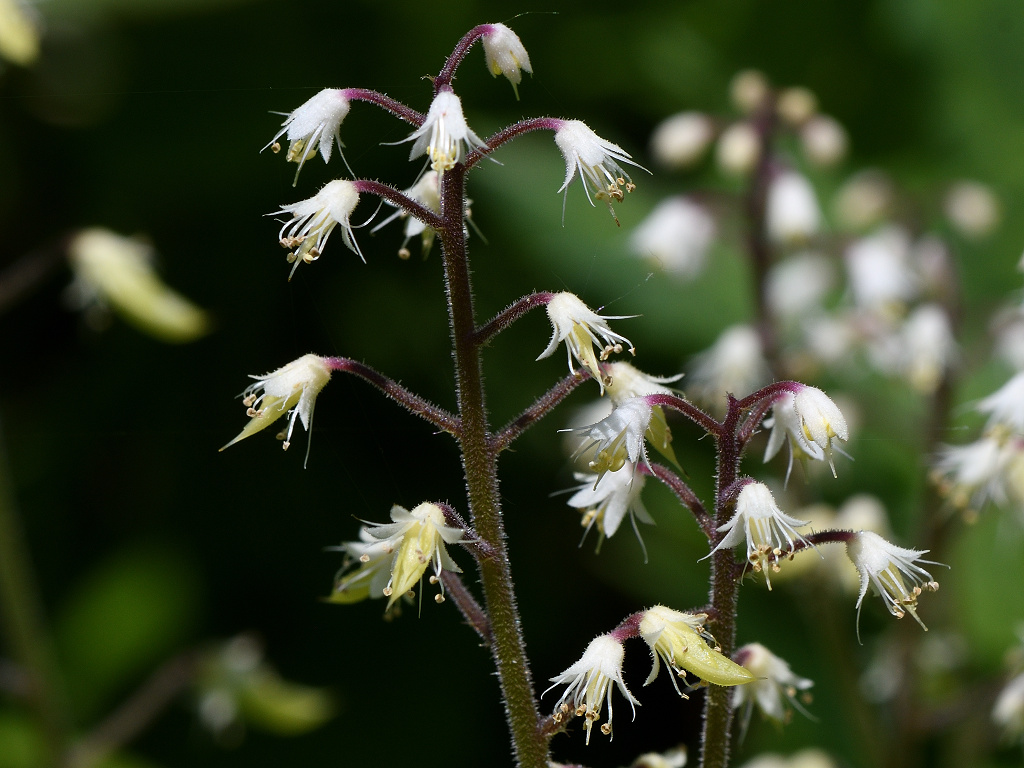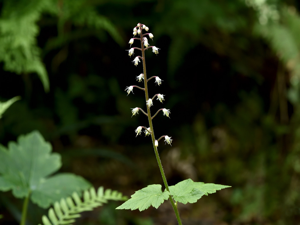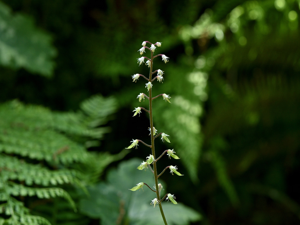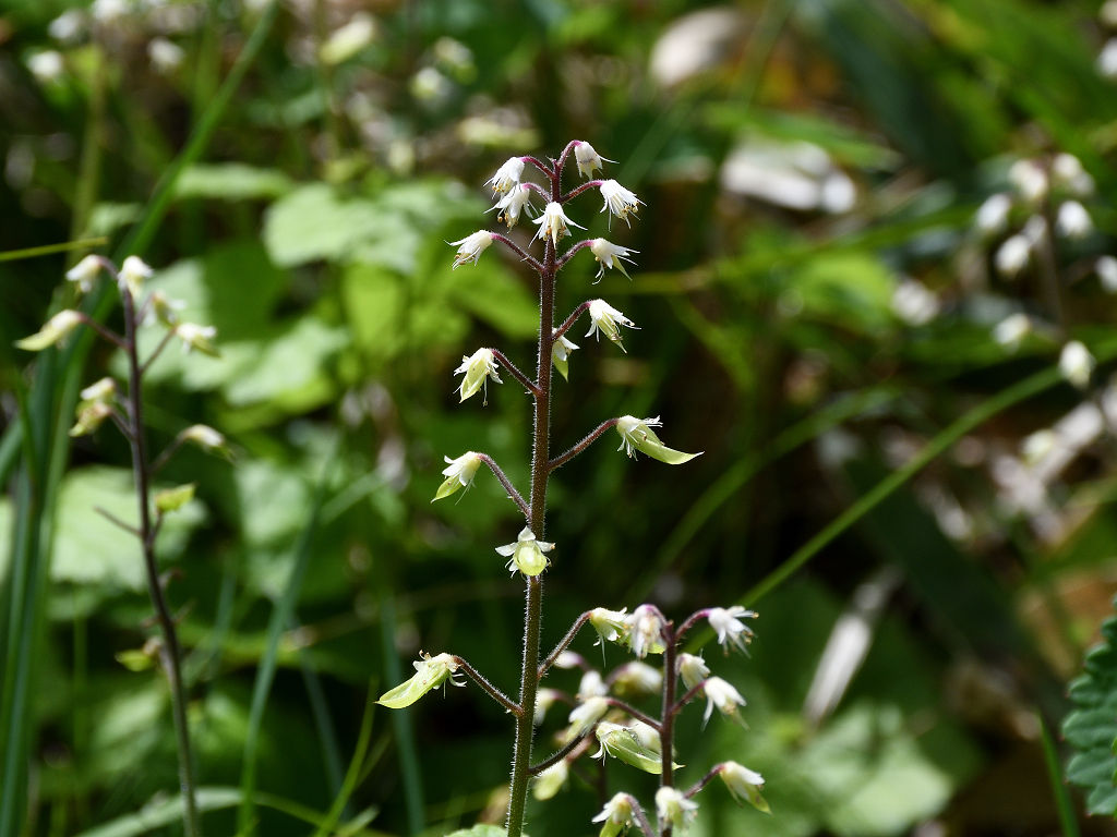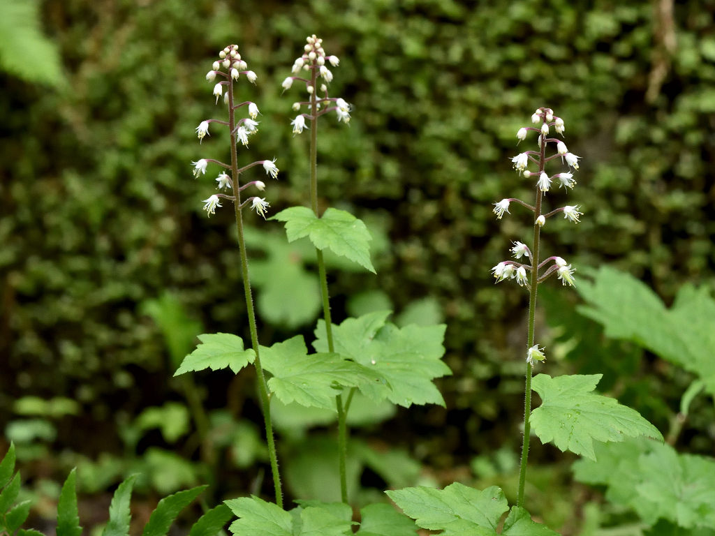 花は白色 5裂したガクが花弁のように見える 本当の花弁は糸状 実は大きな舟形と小さな長楕円形